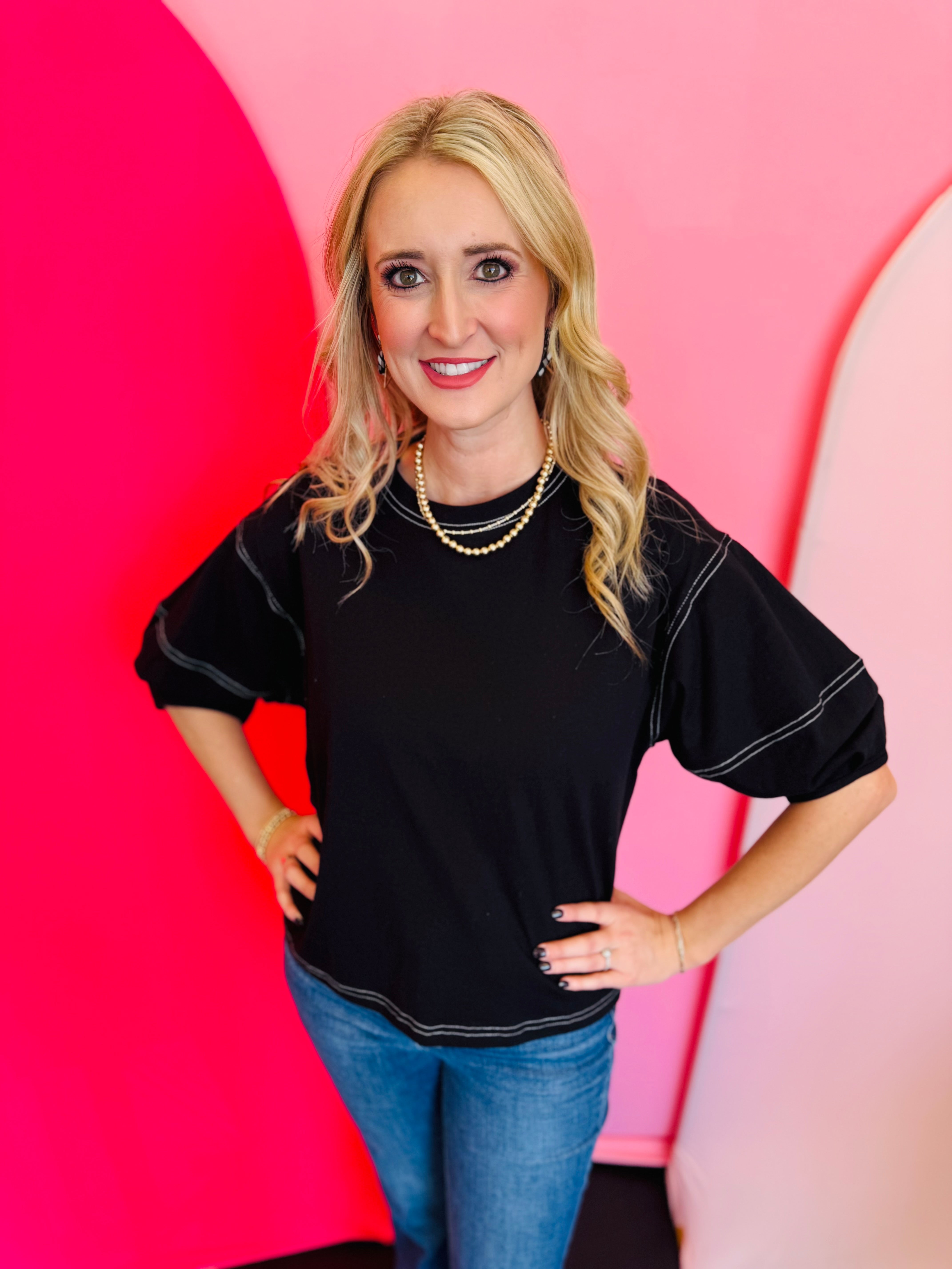 Black Balloon Sleeve Top