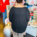 V-Neck Black Waffle Knit Top
