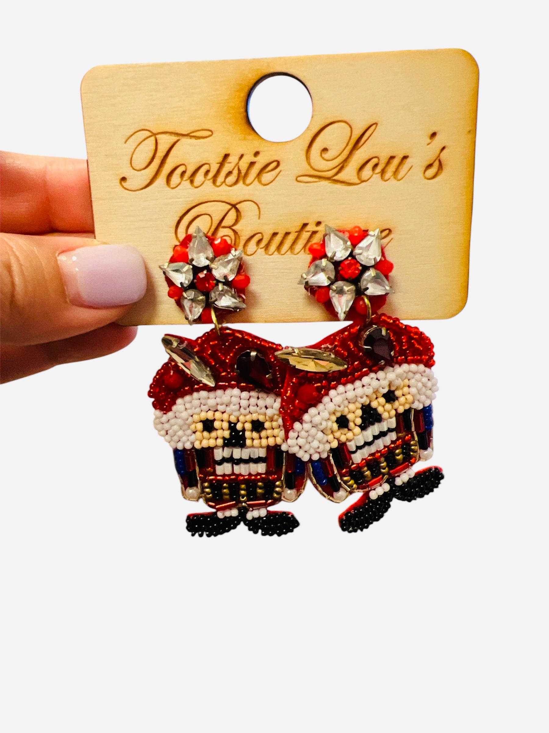 Beaded Wooden Scoop with Embossed Leather and Cowhide