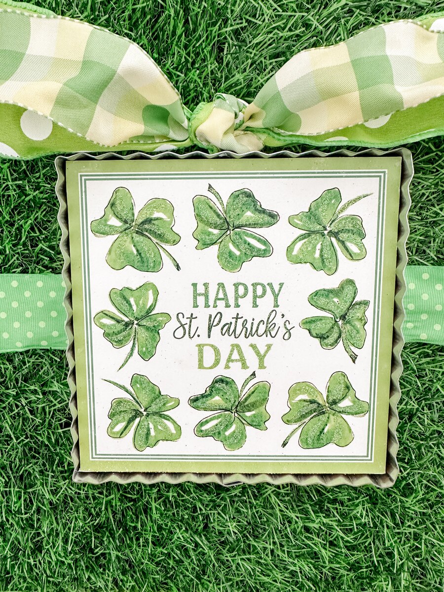 Add a lucky and festive touch to your space with the Mini Gallery Happy St. Pats Day, a playful metal decor piece designed to bring cheerful charm to any display. This delightful square sign features green clovers arranged around a bright “Happy St. Patrick’s Day” message, framed by a green border and softly scalloped metal edges for a fun, handcrafted look that feels both seasonal and stylish.