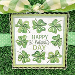 Green clovers surrounding “Happy St. Patrick’s Day” message