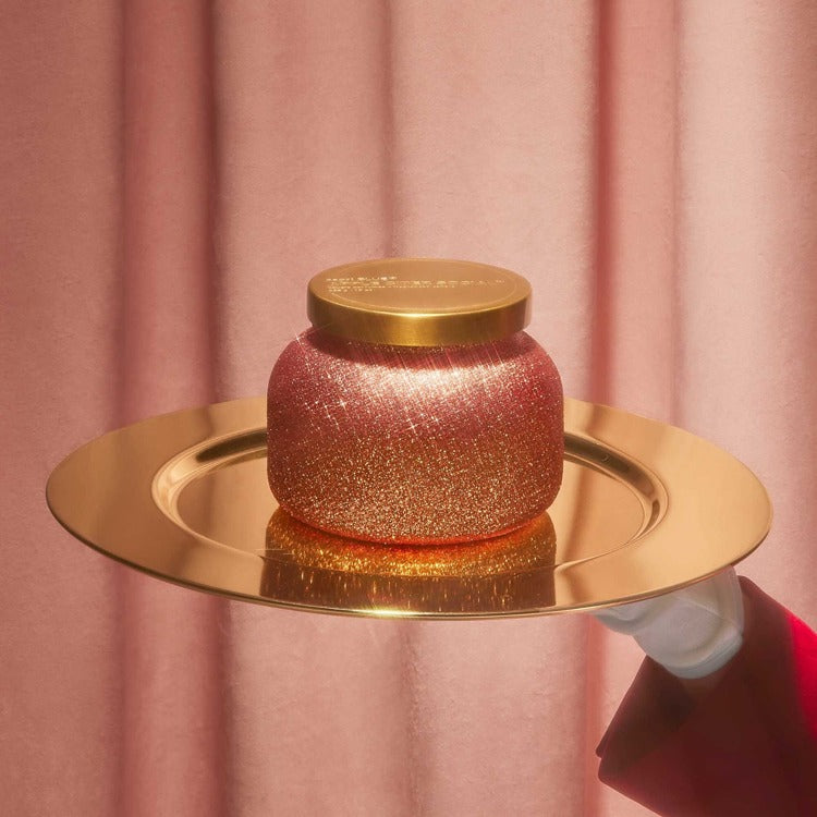 Glimmer your way through crisp autumn days with our Capri Blue Apple Cider Social Glimmer Petite Candle, an 8oz delight designed to infuse your space with cozy fall charm. This stunning candle boasts a captivating cranberry red and shimmering metallic foil finish, instantly evoking all the comforting feels of the season. It fills your home with the delicious aroma of crisp apple, warm cinnamon, juicy pear, grated clove, and fresh nutmeg, creating an inviting and irresistible atmosphere. With its rich, romantic tones and festive appearance, this petite candle is destined to be the highlight of all your holiday parties. Offering up to 40 hours of burn time, it’s a perfect addition to add seasonal flair and captivating fragrance to any room.