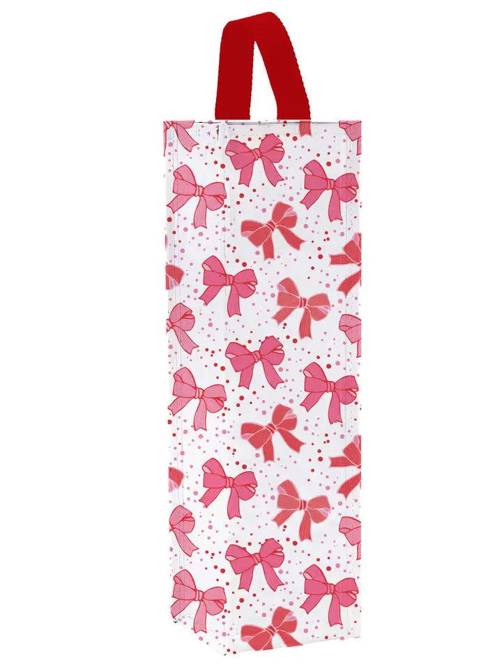Introducing the Bows Wine Bag - the perfect accessory for all your wine needs! With fun pink and red bows, this bag adds a touch of whimsy to any occasion. A playful alternative to boring wine bags. Cheers to celebrating in style! (Pair with our other Christmas Bow accessories for maximum festive flair!)
