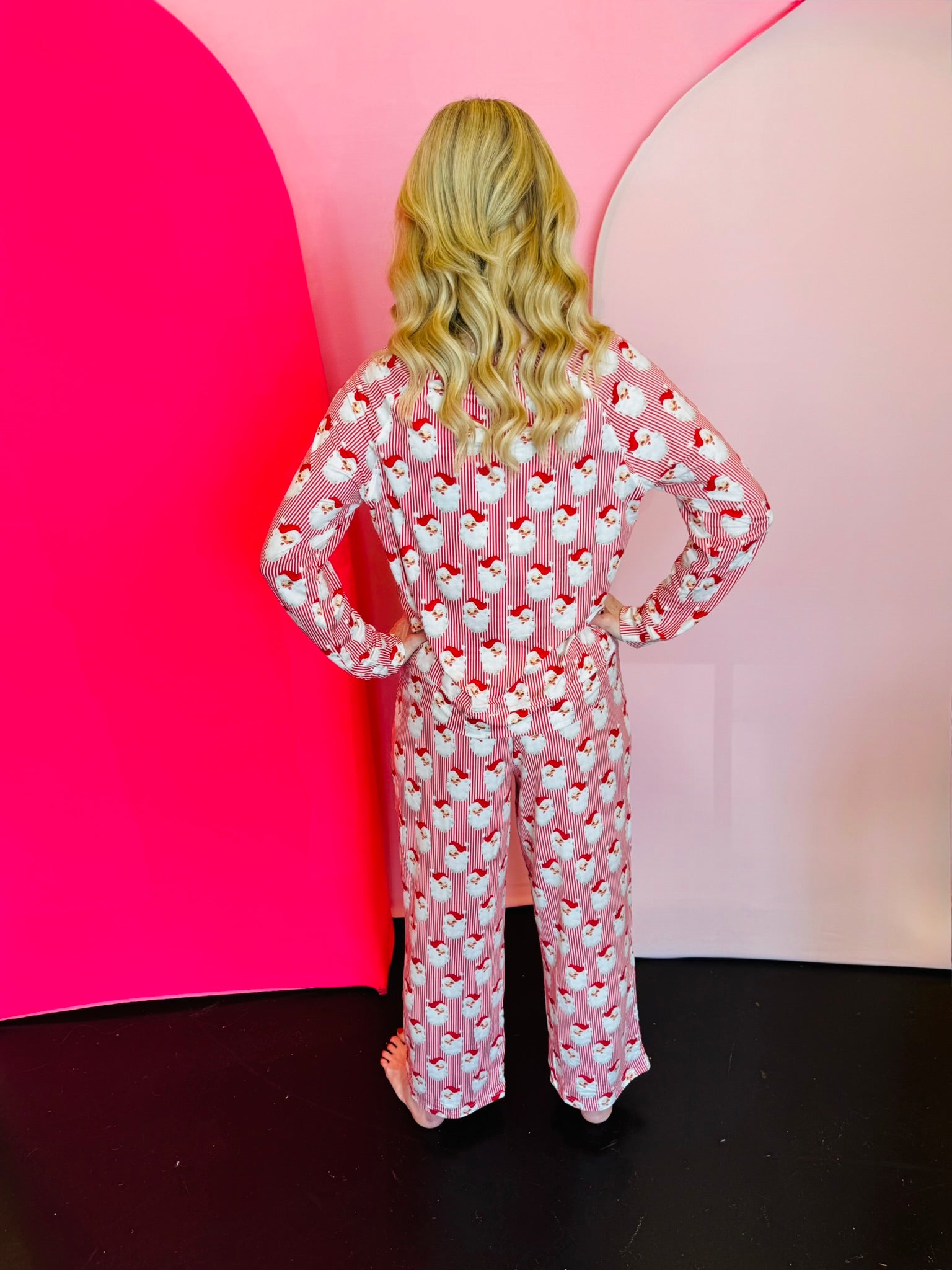 Drift into dreams with our adorable Red Santa Baby Pajama Set! This cheerful set features a delightful red and white striped pattern, perfectly capturing the festive spirit. The entire set is playfully covered with charming Santa faces, bringing a whimsical touch to your bedtime routine. Crafted for ultimate comfort, these pajamas are incredibly soft against your skin, ensuring a cozy night's sleep or relaxed lounging. Ideal for holiday mornings or festive sleepovers, this set combines comfort, cuteness, and holiday cheer beautifully.