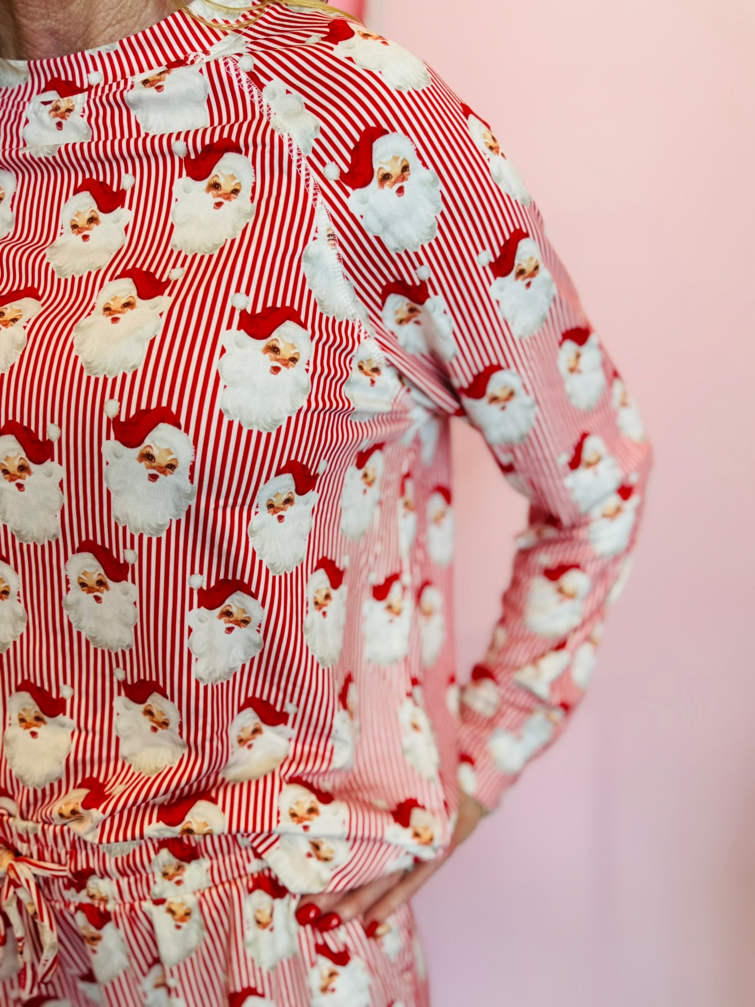 Playful Santa Faces: Whimsical design covering the entire set.