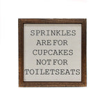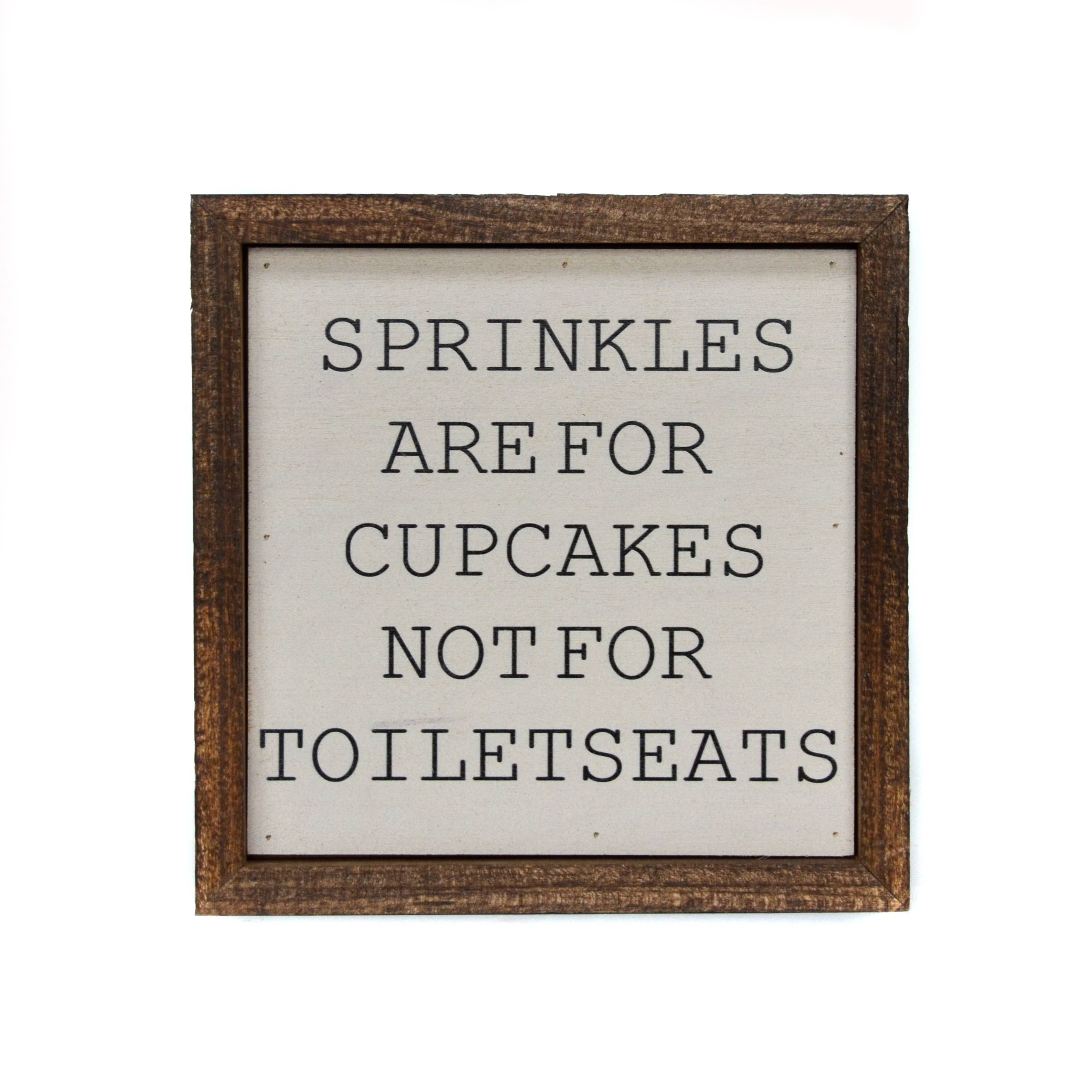 Sprinkles Art For Cupcakes Not Toilet Seats Funny Bathroom Sign. All our signs are build box frame with a rustic touch. Signs are hung directly off the frame or will stand up right on a table or shelf.