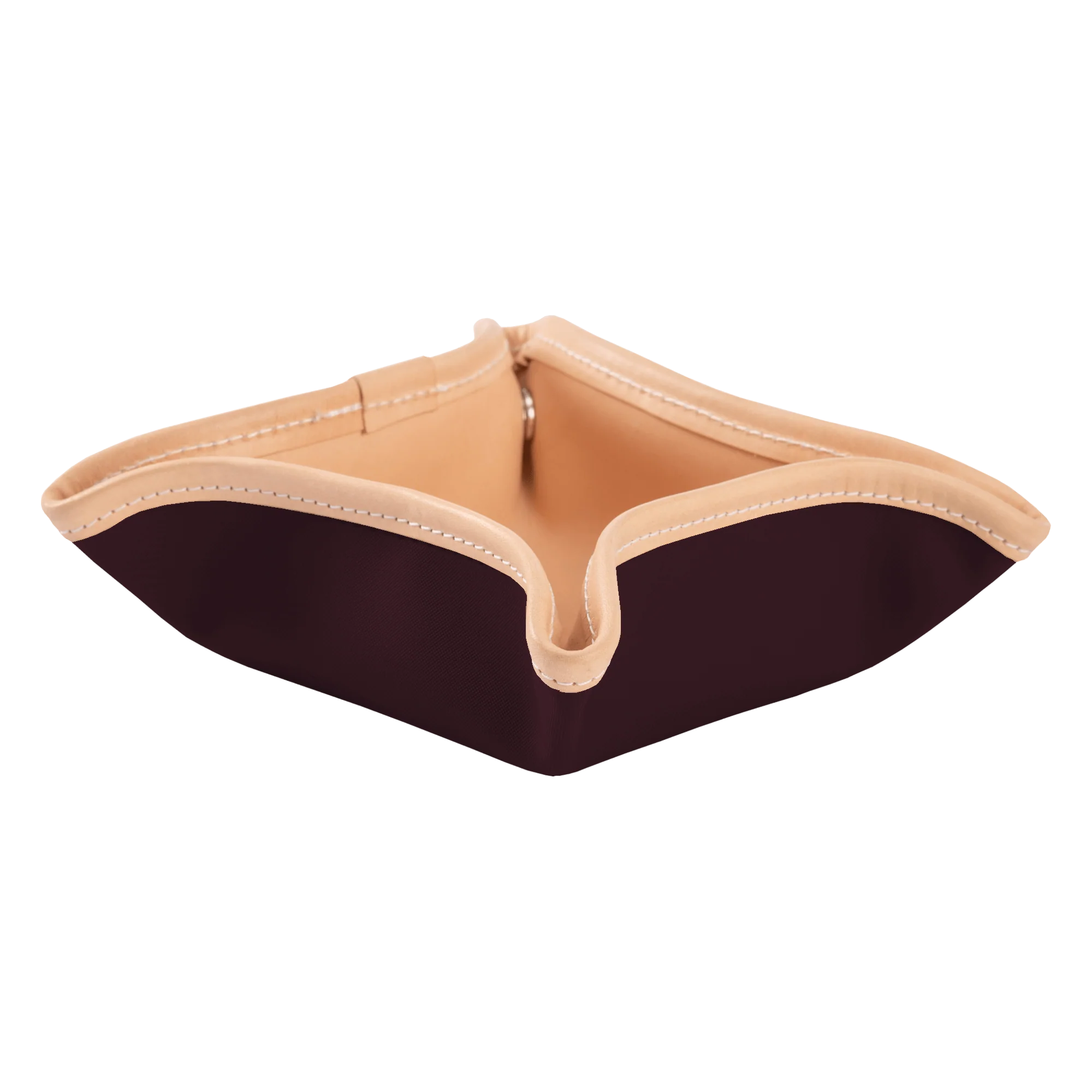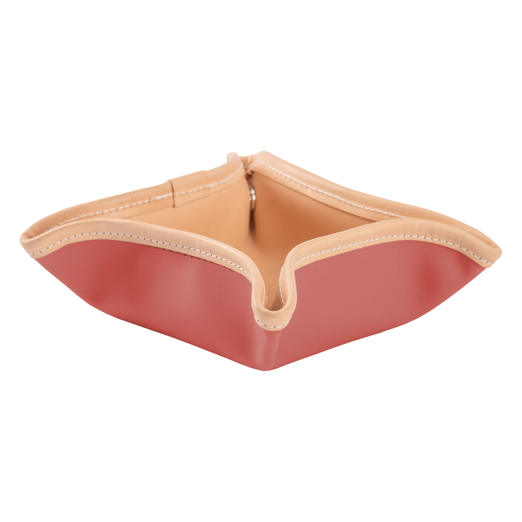 Crafted from durable coated canvas with a refined Natural Leather interior, this tray blends function with timeless Jon Hart style. Silver snapped closures at each corner allow it to quickly form into a structured tray, while the flat design makes it easy to pack into luggage or store when not in use. Perfect for travel, nightstands, entry tables, or office desks, it ensures your essentials always have a dedicated place. Personalization is applied directly onto the leather using hot stamping, which creates a debossed finish and may appear subtle. Please note personalized items cannot be re-monogrammed or returned.