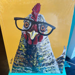 Chicken With Glasses Metal Sign
