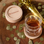This sophisticated Coaster Set makes the perfect table topper for any dining room, coffee table, or conference room. Add your unique monogram to each individual Coaster and snap them together with the handy leather holder. Comes 4 Coasters to a set.