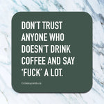 DON'T TRUST ANYONE WHO DOESN'T DRINK COFFEE AND SAY 'FUCK' A LOT.