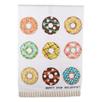Add a cheerful, whimsical touch to your kitchen decor with the Donut Stop Believin Tea Towel! Its vibrant colors and delightful design will delight and inspire - treat yourself or your loved ones to a special kitchen accessory that will bring a smile to your face every time you use it!