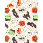 Features pumpkins, ghosts, bats, black cats, candy corn, and Frankenstein faces