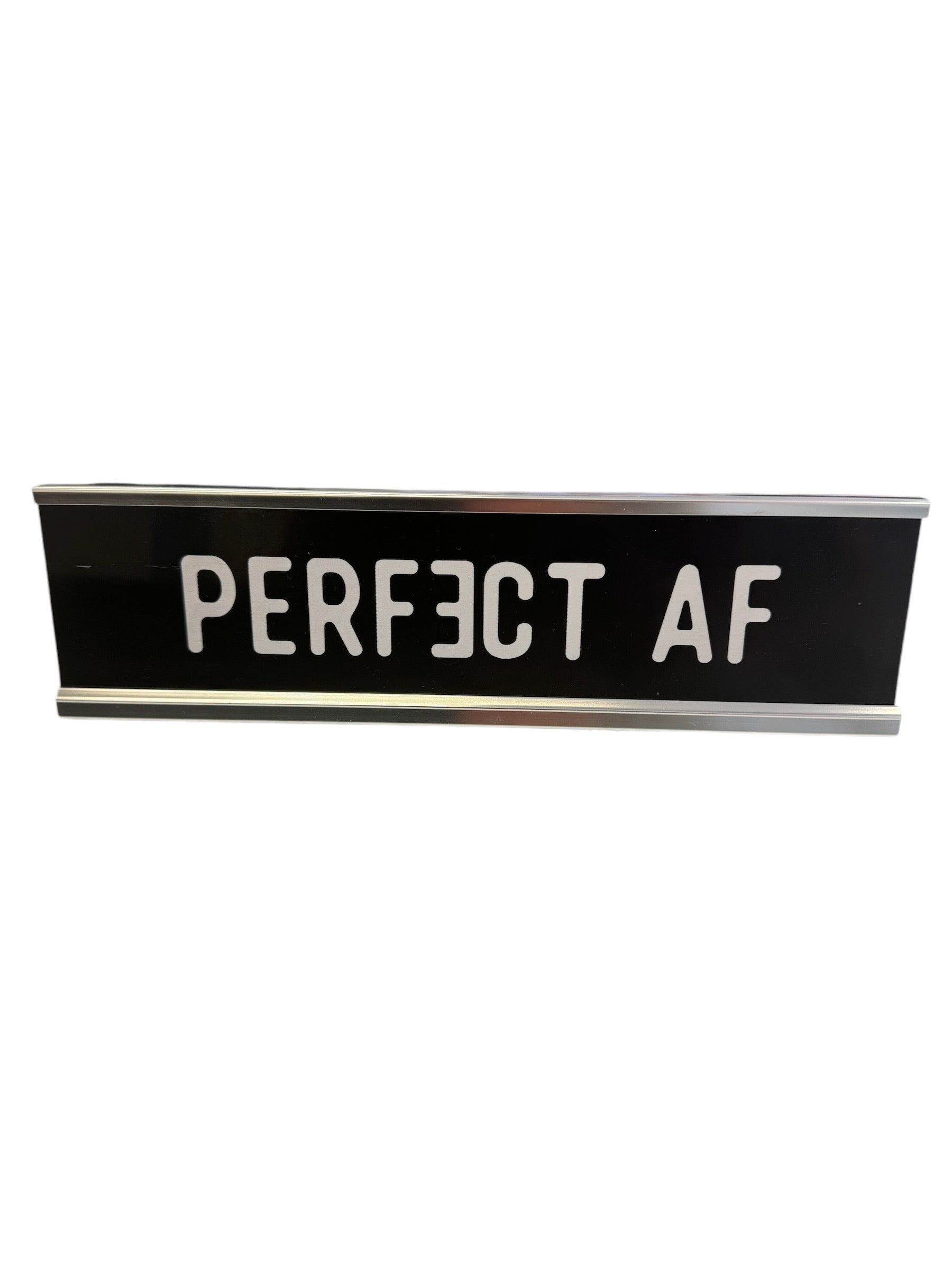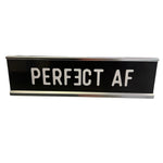 Introducing the Perfect AF Name Plate! This funny name plate is perfect for the perfect person in your life. Whether it's for yourself or as a hilarious gift, it's sure to add some fun to any office decor.
