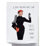 Inspire your kitchen with the A Wise Woman Once Said Tea Towel. This 20"x20" white polyester towel features a decorative design that won't peel or crack in the wash. Designed and pressed in Louisiana, USA. (Perfect for channeling your inner wise woman while keeping your kitchen clean!)