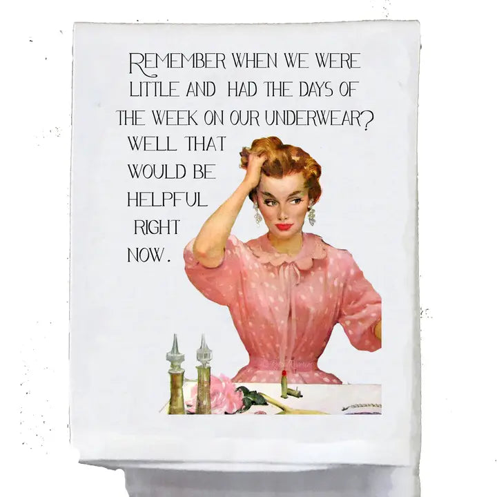 REMEMBER WHEN WE WERE LITTLE AND HAD THE DAYS OF THE WEEK ON OUR UNDERWEAR? WELL, THAT WOULD BE HELPFUL RIGHT NOW.