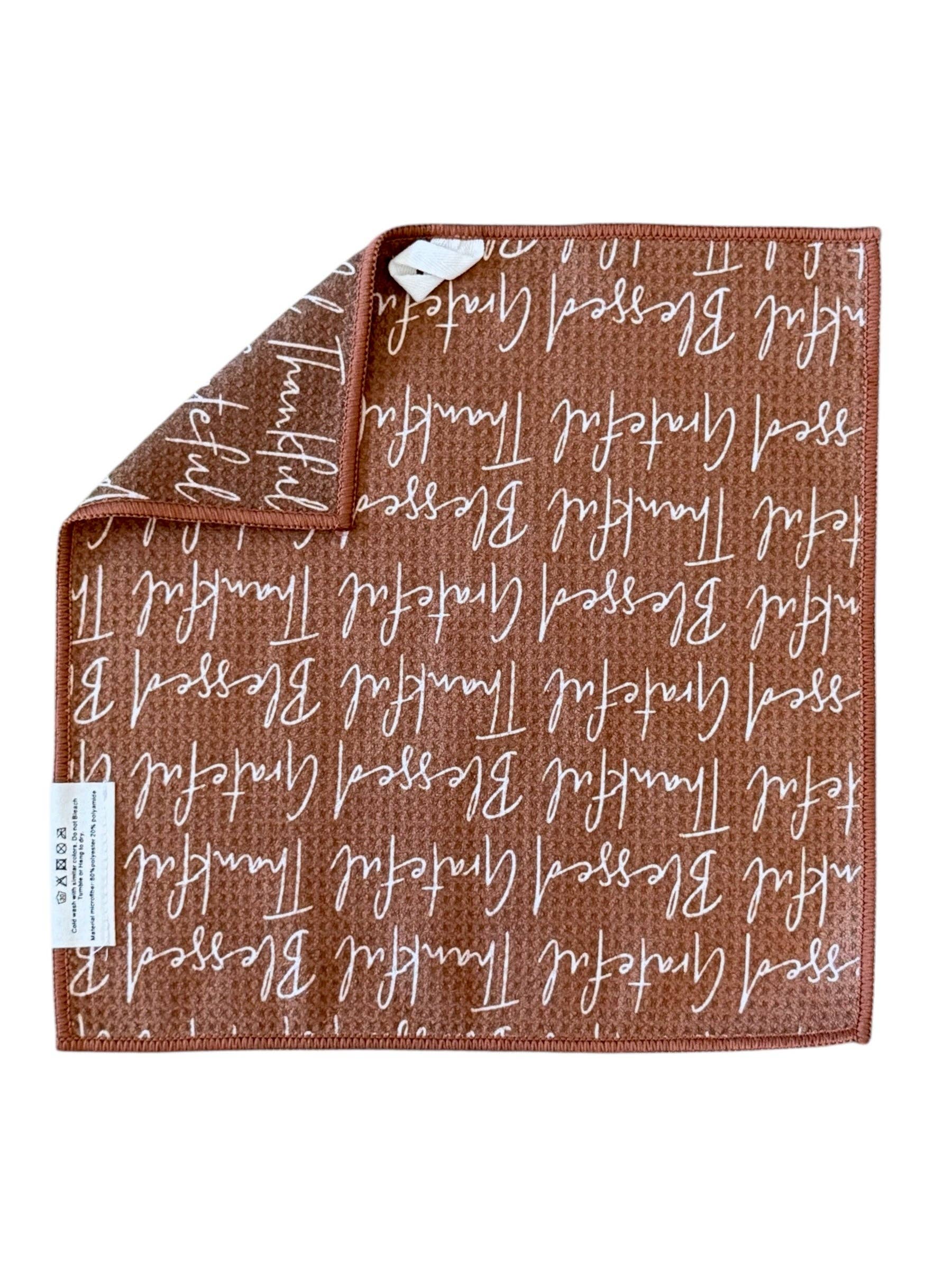 Celebrate gratitude in style with the Crae Thankful Double-Sided Washcloth, a cozy and functional seasonal essential. Crafted from high-absorbent waffle weave microfiber, this washcloth is lightweight, quick-drying, and eco-friendly—perfect for use in the kitchen or bath. Measuring 12" x 12", it’s the ideal size for wiping spills, drying hands, or adding a meaningful accent to your sink space. The double-sided construction features the same design on both sides, ensuring your décor looks consistent and inviting from every angle. The design showcases a rich brown background with cream lettering that repeats the words “Thankful, Grateful, Blessed”, making it a thoughtful addition for fall gatherings or everyday reminders of gratitude. Easy to care for, simply wash with other microfiber products and tumble dry low. A beautiful mix of function and inspiration.