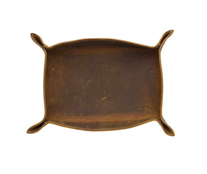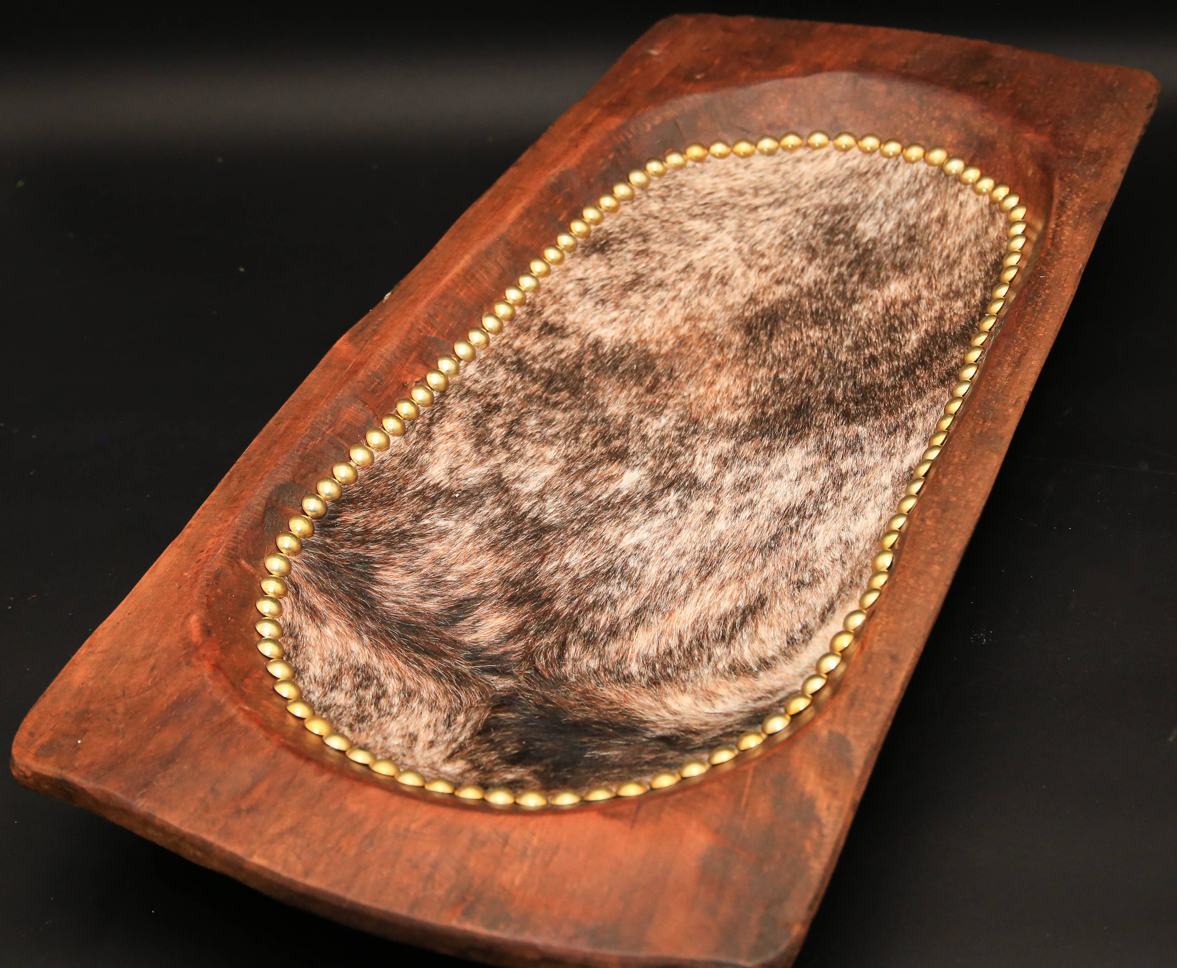 Beaded Classic Dough Bowl with Embossed Leather and Cowhide