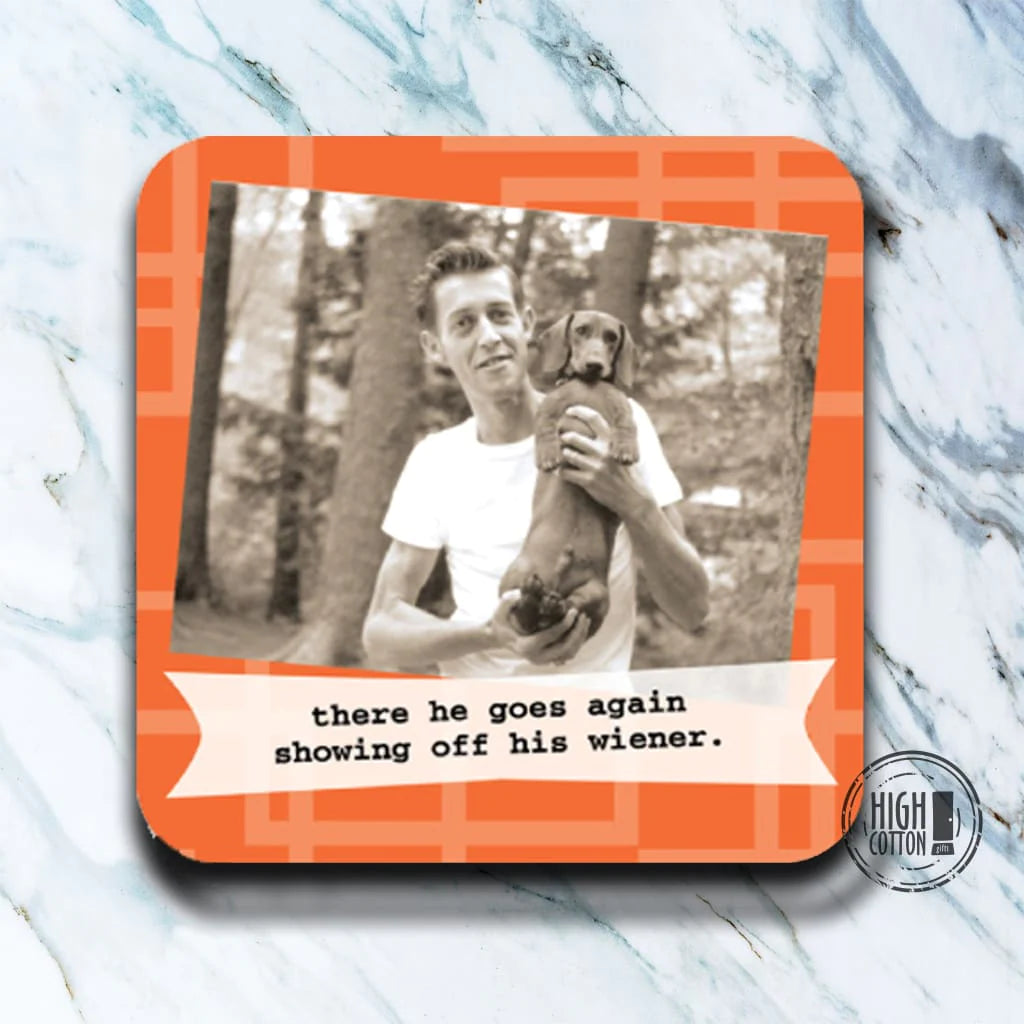 Showing Off His Wiener Coaster