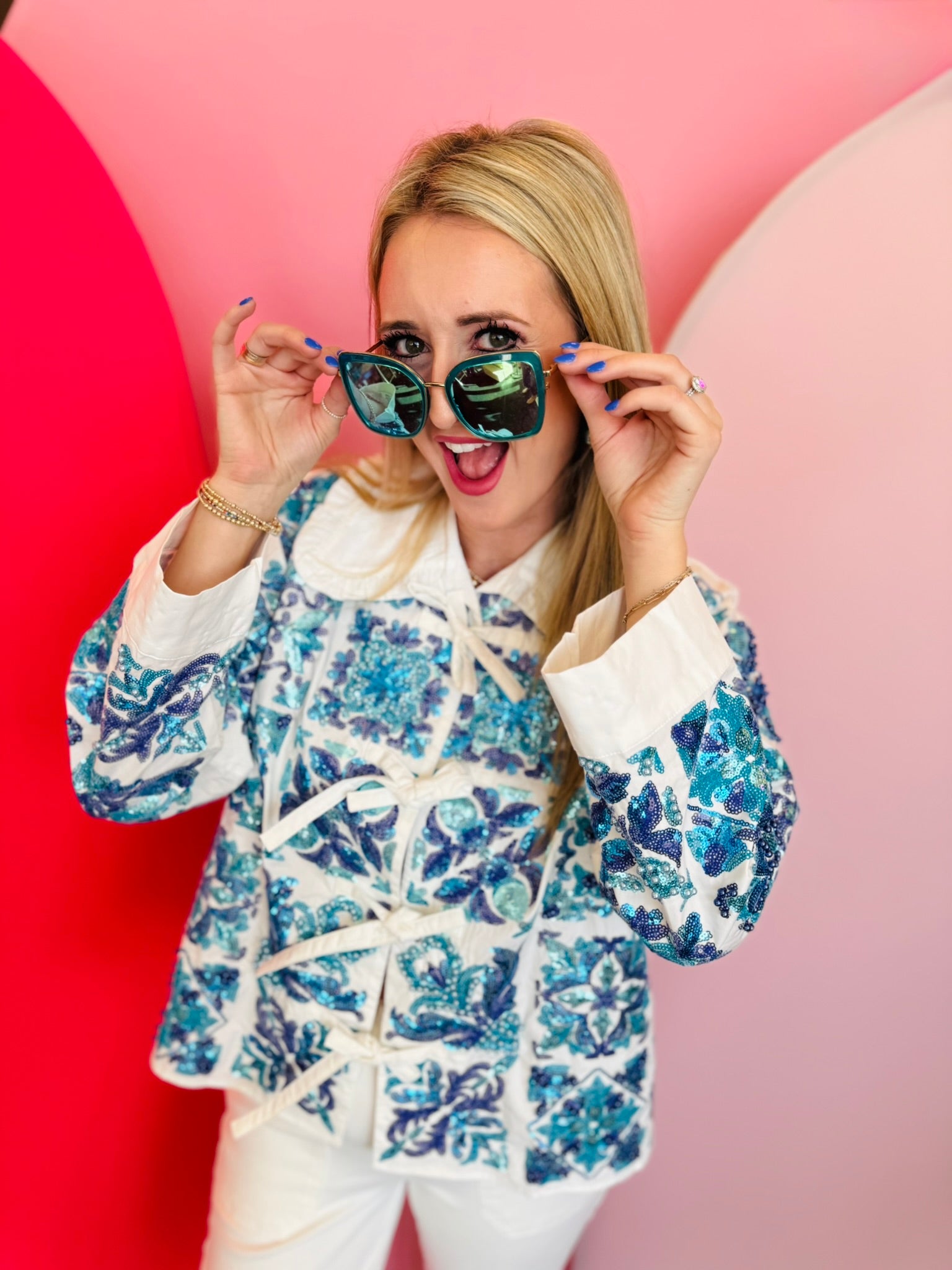 DIFF Clarisse Turquoise Ice Crystal + Ice Mirror Lense Sunglasses