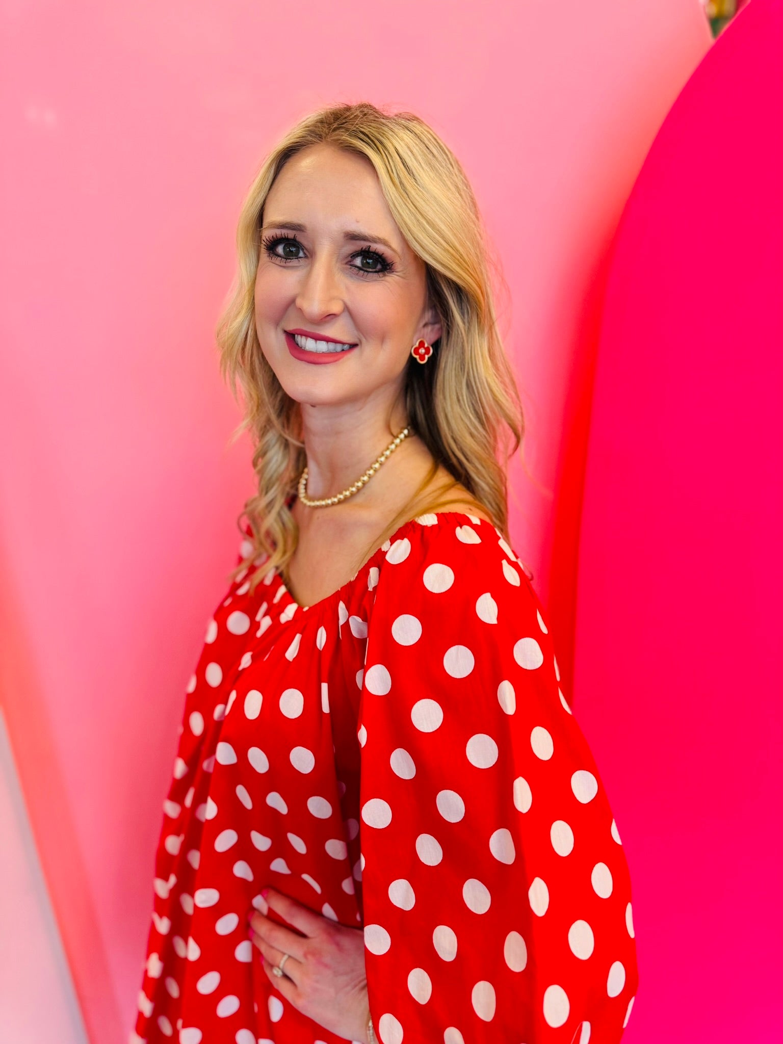 Vibrant Red Polka Dot Print: A timeless pattern that makes a statement while remaining classic.