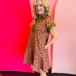 Terra Cotta Abstract Ruffle Mini Dress