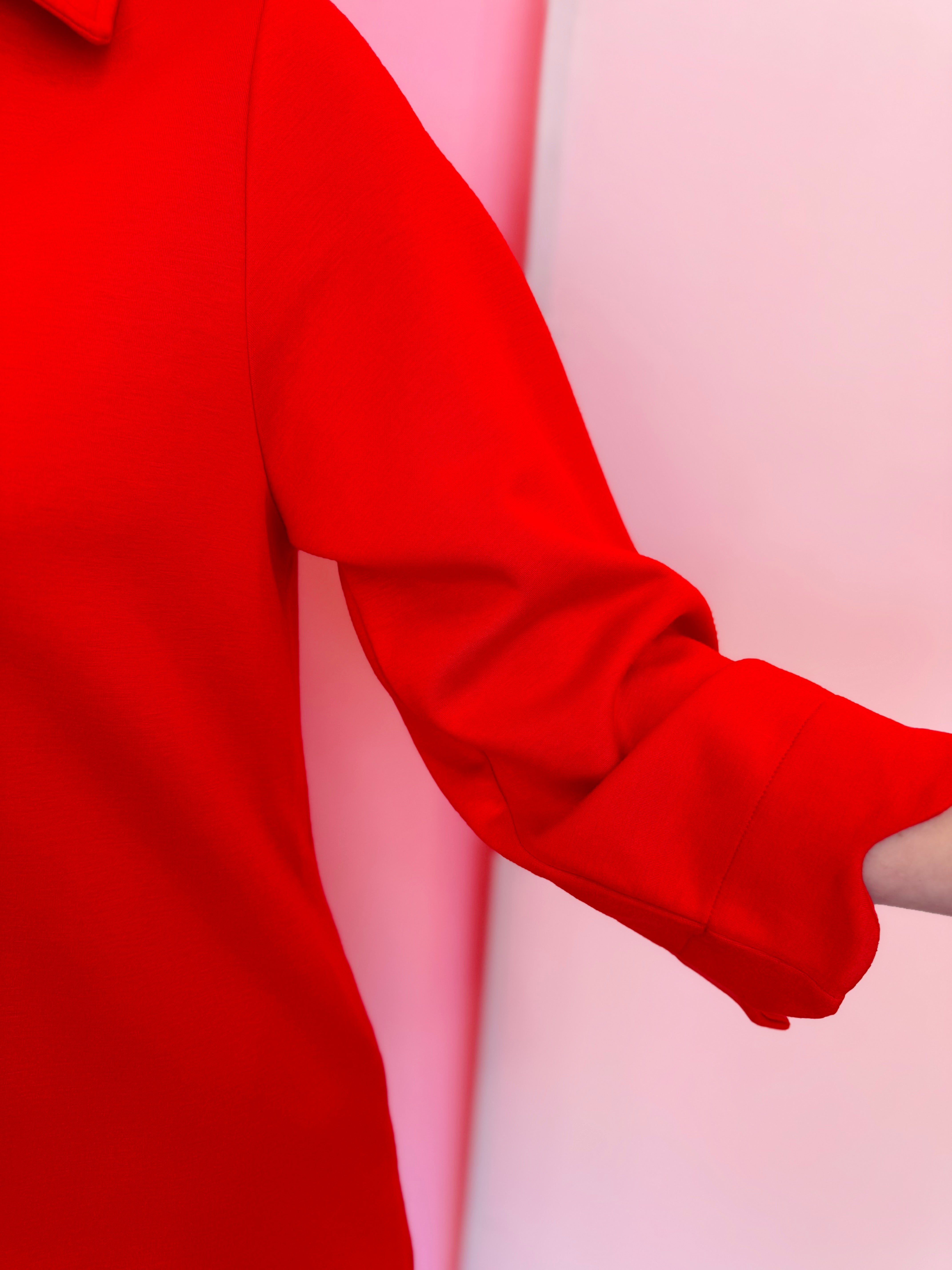 Finished with a delicate scalloped hemline, this dress features subtle feminine detail that elevates its classic silhouette. Functional side pockets add practicality without sacrificing style, giving you the convenience you’ll love for busy days on the go. Whether paired with sandals for casual outings, boots for fall styling, or heels for dressier occasions, this red dress transitions seamlessly from day to night. Comfortable, flattering, and endlessly versatile, it’s a go-to piece you’ll reach for again and again.