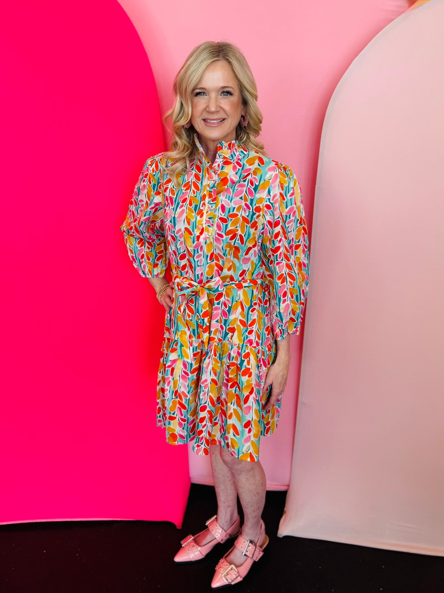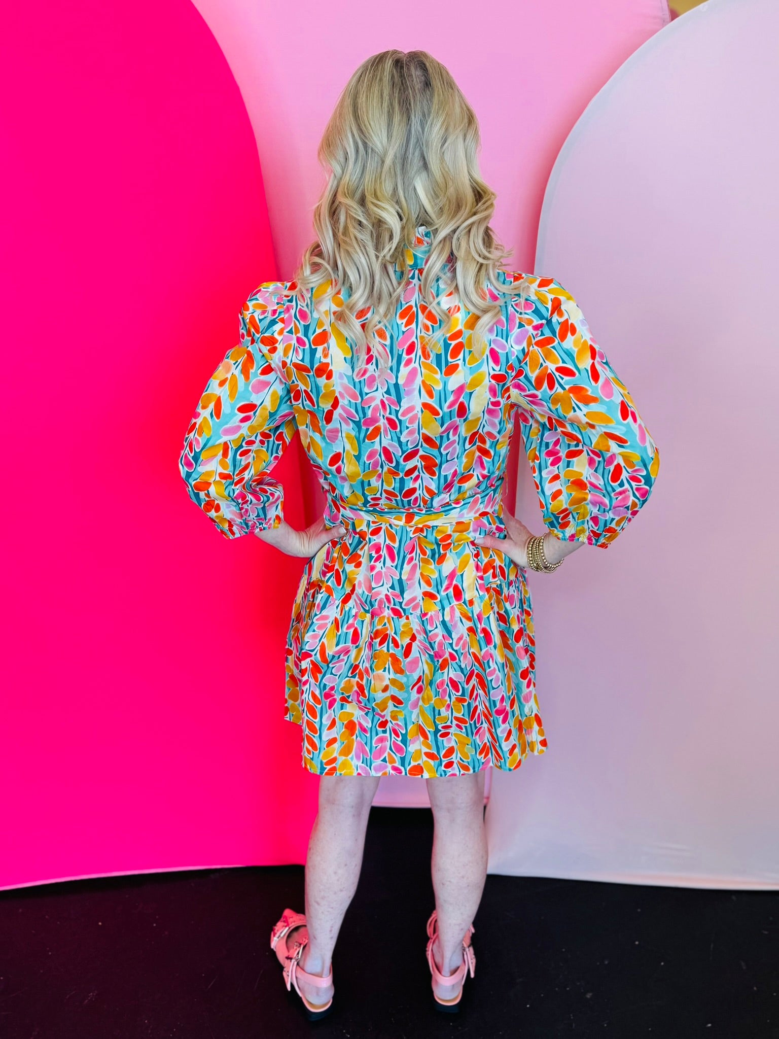 Brighten your wardrobe with our Sunny Petals Tiered Dress, a cheerful and feminine piece designed to bring effortless charm to your everyday style. Featuring a vibrant floral print in bold, happy hues, this dress makes a statement while remaining easy and wearable. The flattering tiered silhouette creates beautiful movement, while the adjustable waist tie defines your shape for a customized fit.
