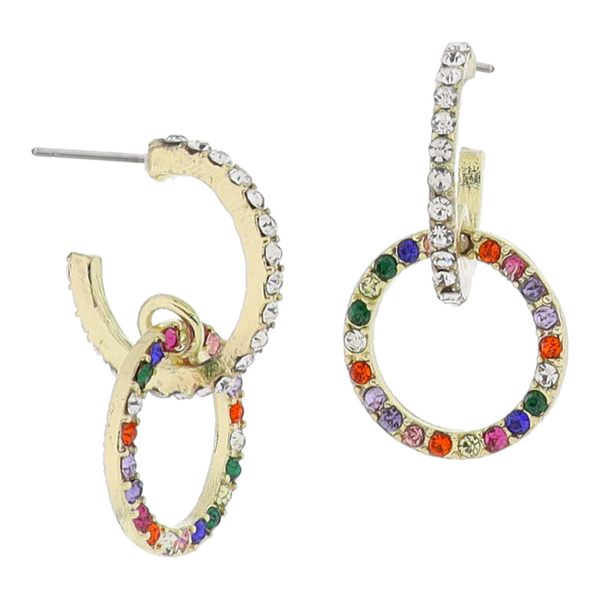 Shine bright with our Rhinestone & Colorful Hoop Earrings! Made with 18K gold plating, these earrings feature a clear crystal hoop adorned with a multi-colored crystal circle. Measuring 1.25" from top to bottom, they add a touch of glamour and playfulness to any outfit. (Get ready to sparkle and dazzle!)