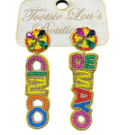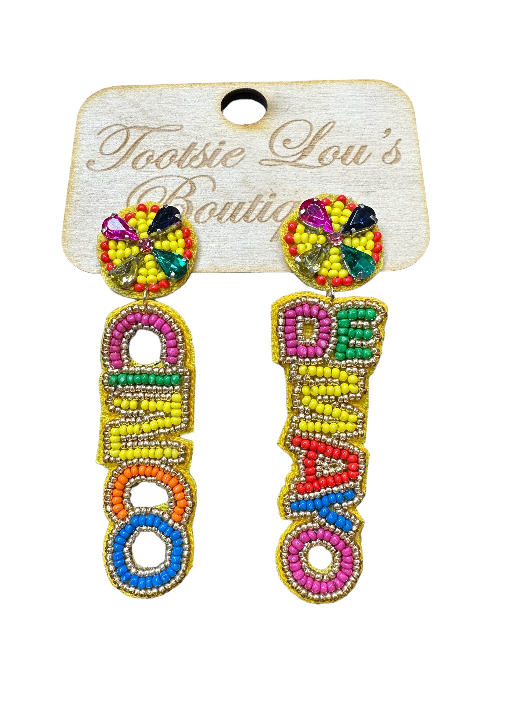 Celebrate Cinco de Mayo in style with our Beaded Dangle Earrings! These colorful earrings will add a pop of fun and festive charm to any outfit. Featuring a bright variety of colors and playful dangles of "Cinco" and "deMayo," these earrings will be sure to make a statement.