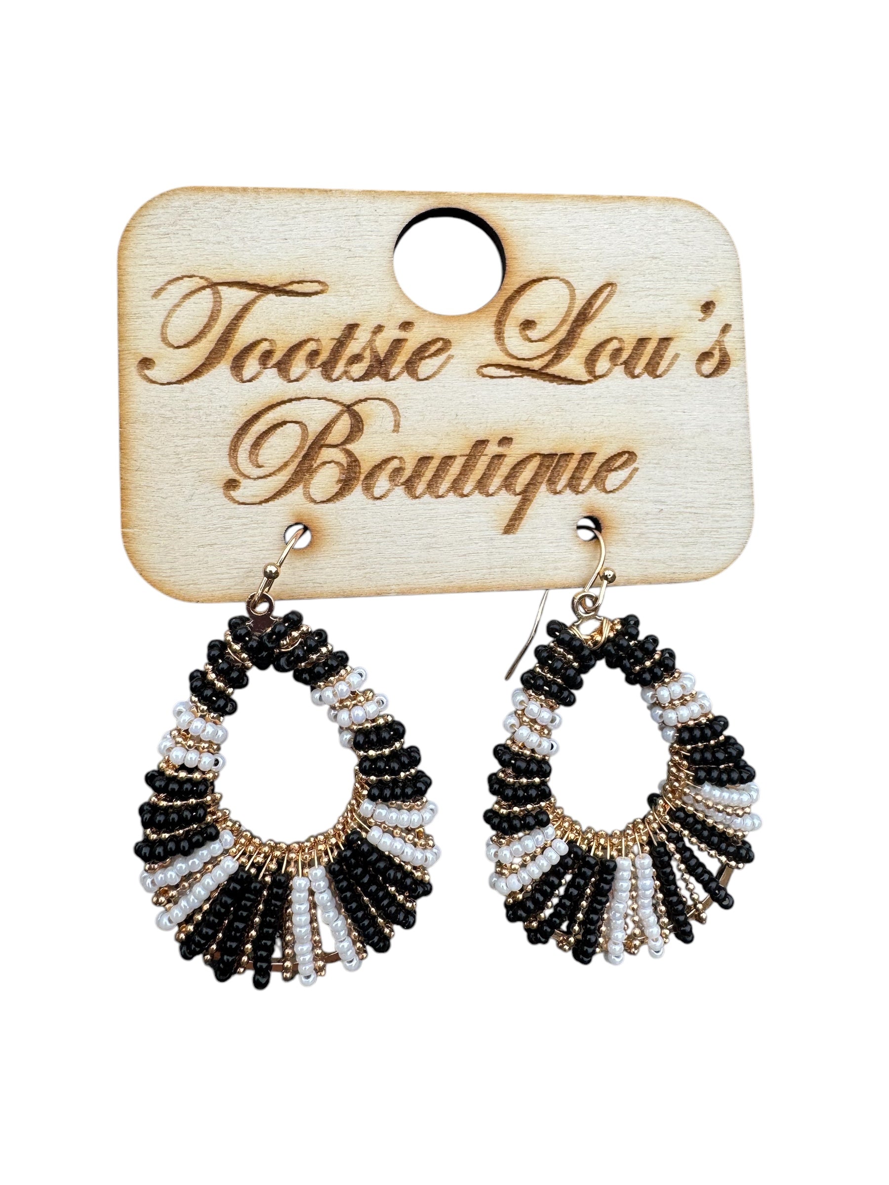 Get ready to add a touch of whimsy to your wardrobe with our Beaded Teardrop Earrings! These playful earrings feature a teardrop shape adorned with gold, black, and white beads, making them the perfect accessory for any outfit. Elevate your style with a pop of color!