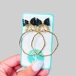 Elevate your style game with our Black Bethany Bow Hoops Earrings. These unique dangles effortlessly blend elegance and flair. With beaded black bows on hammered gold hoops, they're perfect for any occasion. Indulge in luxury jewelry that complements every outfit.