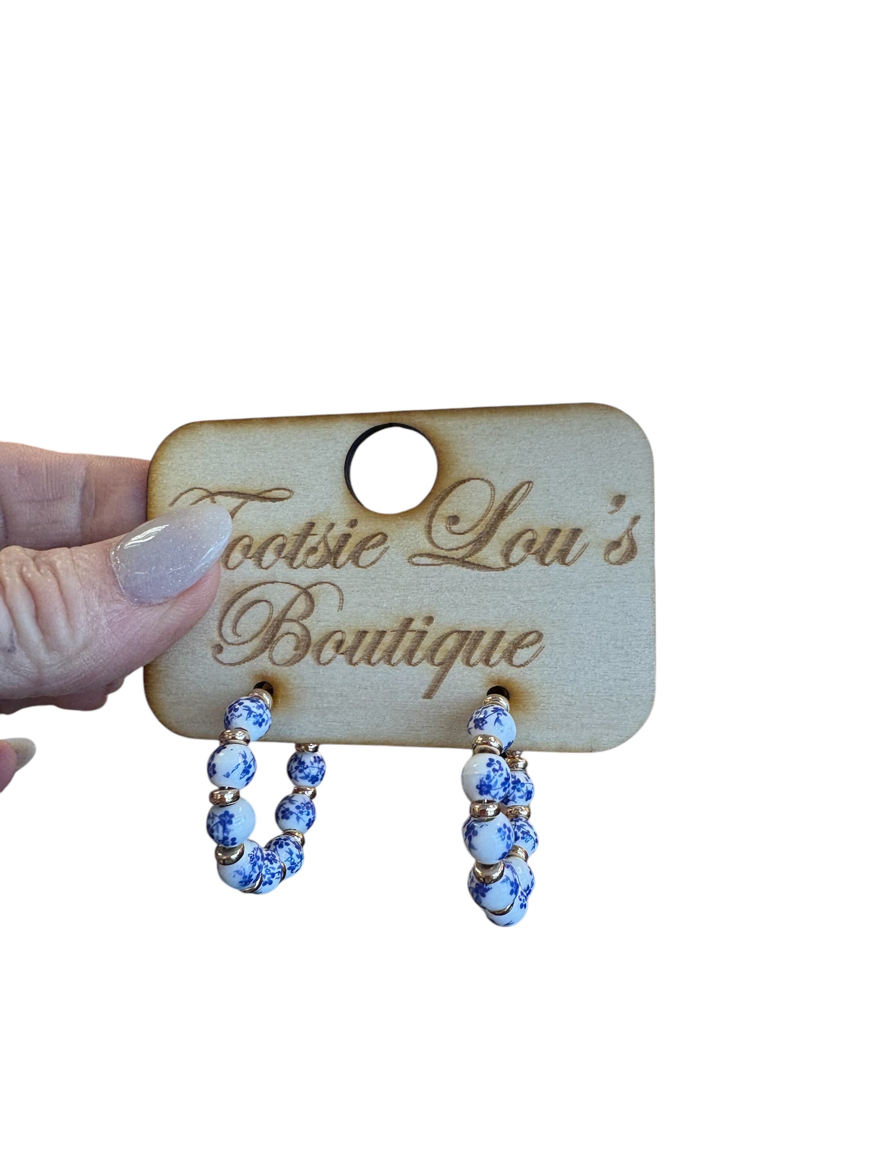 Get ready to be the talk of the town with our Blue Chinoiserie Hoop Earrings. These hoop earrings feature the most popular chinoiserie pattern, adding a touch of playful elegance to any outfit. Upgrade your earring game and stand out with these unique and trendy hoops.