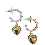 Indulge in these luxurious Blush Pink & Heart Earrings, featuring delicate blush pink enamel hoops and a gold heart charm dangle. Designed in a classic gold setting, these earrings are the perfect accessory for adding a touch of romance to any Valentine's day outfit.