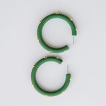Elevate your style with our Candace Large Forest Earrings! These beautiful forest green hoop earrings feature gold stud accents that add a touch of elegance. Made with lightweight acrylic, they are comfortable to wear all day long. Perfect for any occasion, these earrings will make you stand out in the best way possible.