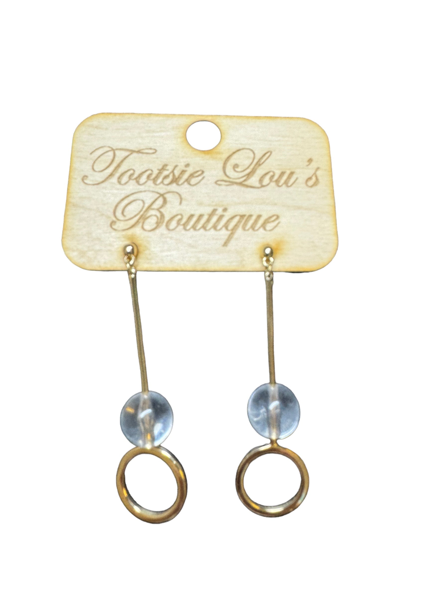 Introducing our playful and stylish Circle Dangle Earrings! These earrings feature a chic gold ball stud with a unique circle dangle and a touch of whimsy with a clear bead accent. Perfect for adding a fun twist to any outfit. Upgrade your earring game with these quirky beauties!