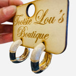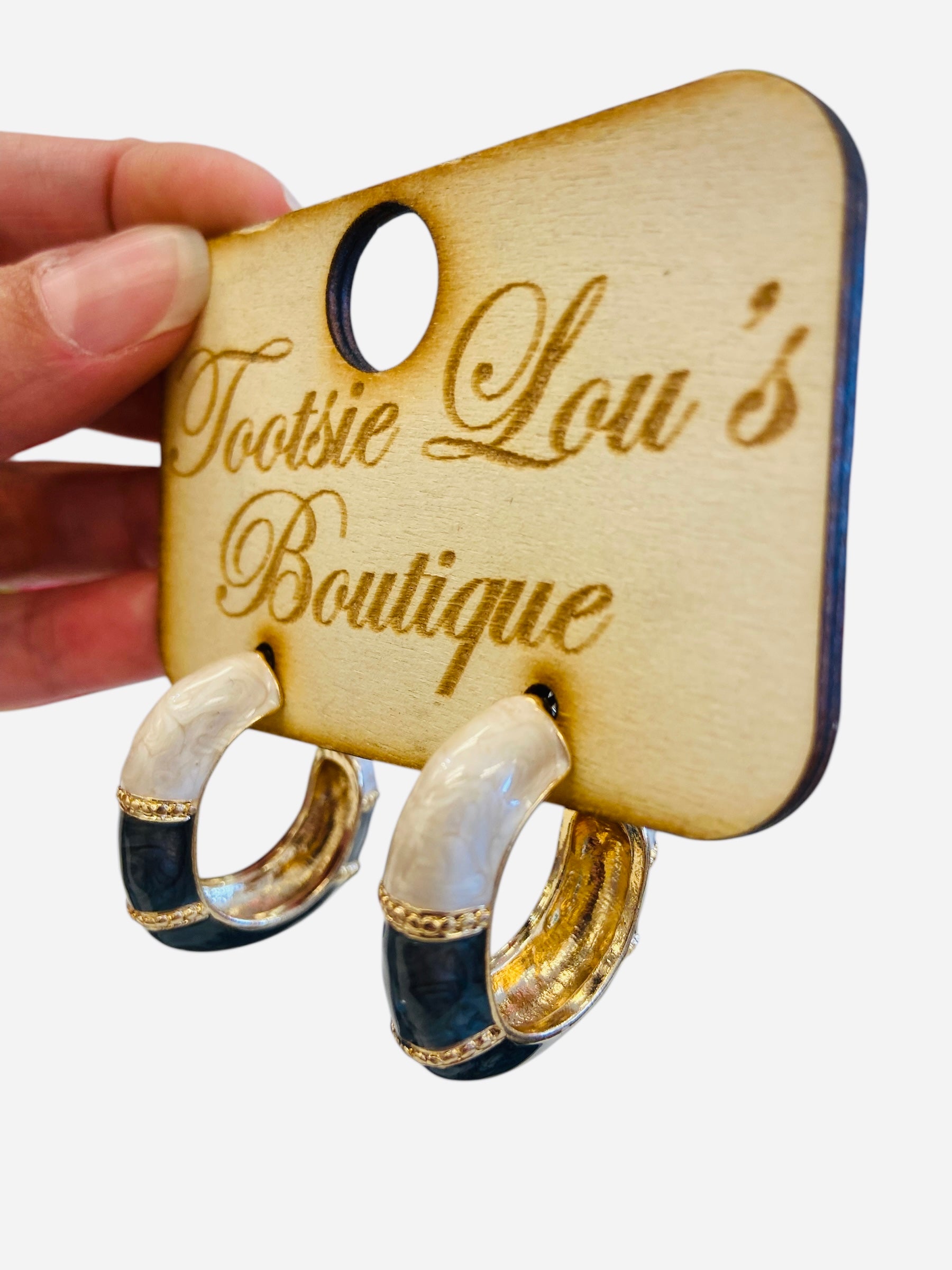 Elevate your style with these sophisticated gold hoop earrings, featuring rich color blocks of cream, gray, and black. Their thick, one-inch design offers a refined statement piece that complements both casual and formal looks with effortless elegance.