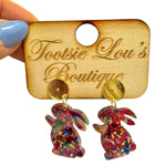 Fuchsia Glitter Flecked Bunny Earrings
