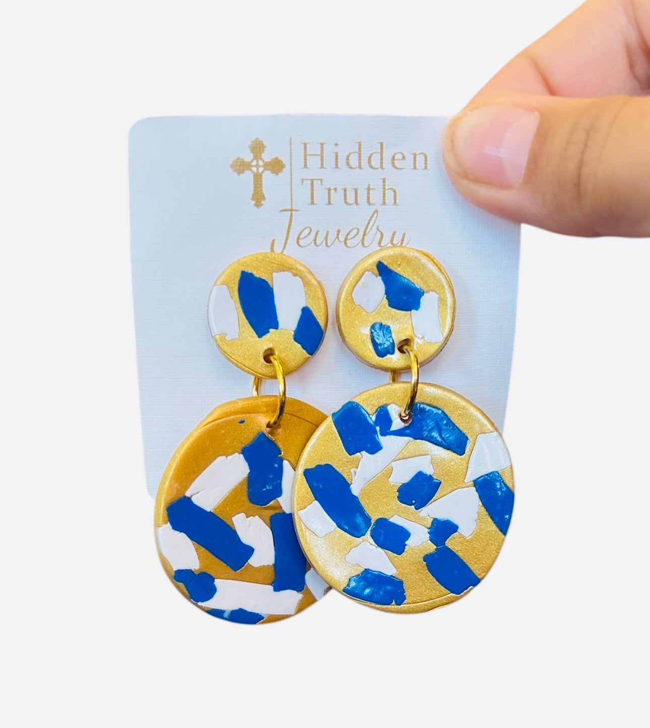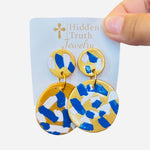 Add some team spirit to your game day look with our Gameday Blue & White Dangle Earrings! These lightweight earrings feature a unique design and even have a special scripture on the back. Perfect for all your game day festivities!