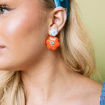 Add a splash of color and sparkle with the Hello Edie Light Blue & Orange Flower Earrings. These playful earrings feature a lightweight light blue enamel stud paired with a vibrant orange dangle, both accented with clear rhinestones for a subtle shimmer. Perfect for brightening any outfit with a fun, cheerful vibe!