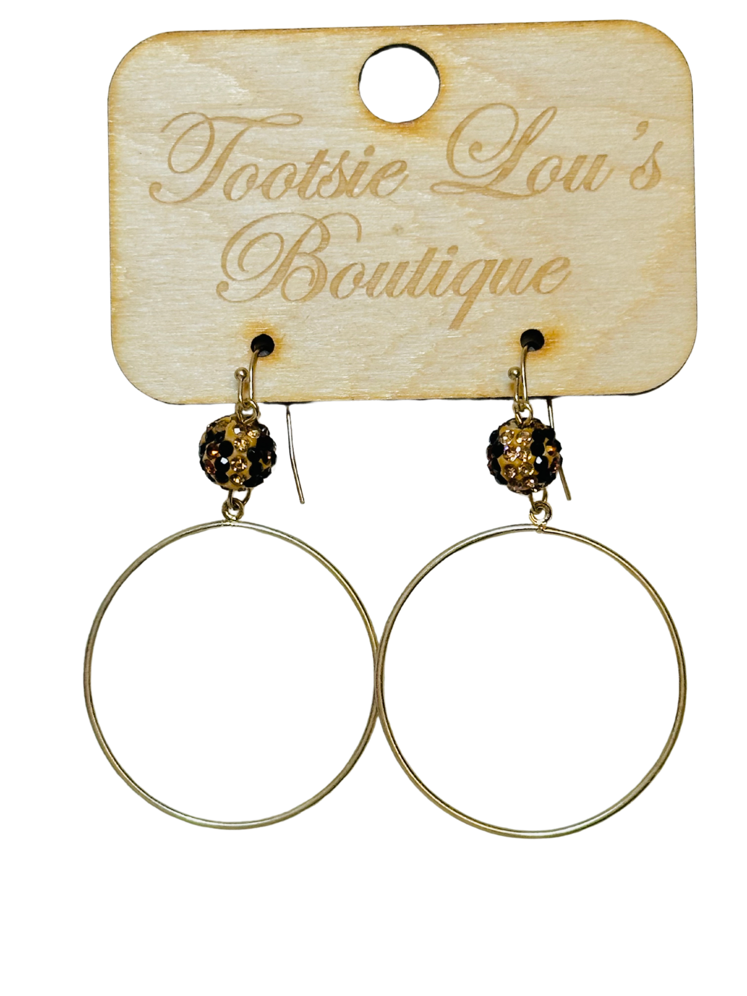Add a touch of wild elegance to your look with our Leopard Ball Hoop Earrings. The rhinestone ball with a leopard design elevates these gold hoop earrings, adding a touch of luxury and sophistication. Perfect for any occasion, these earrings are sure to make a statement.