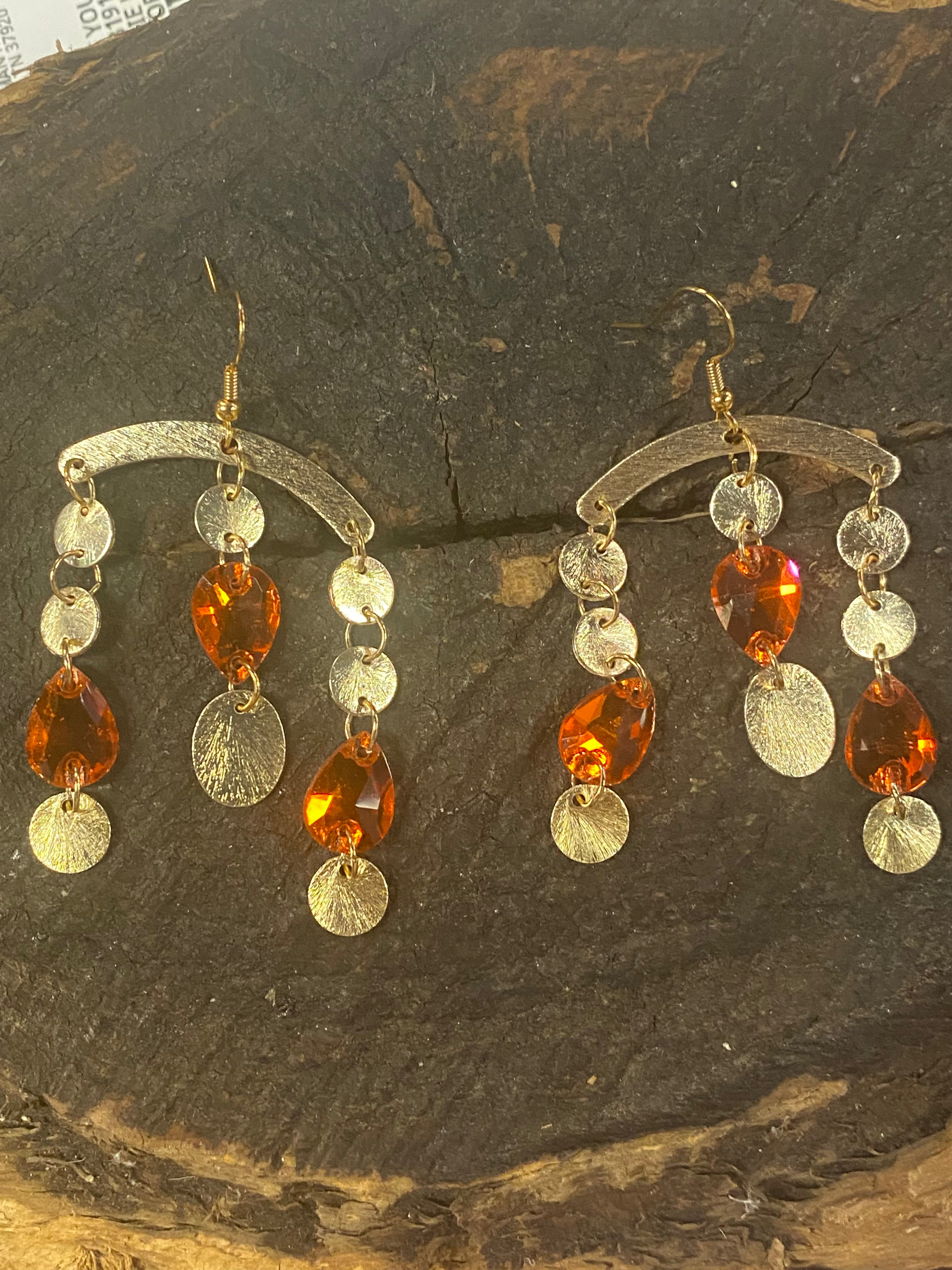 Orange Gold Arch Earrings