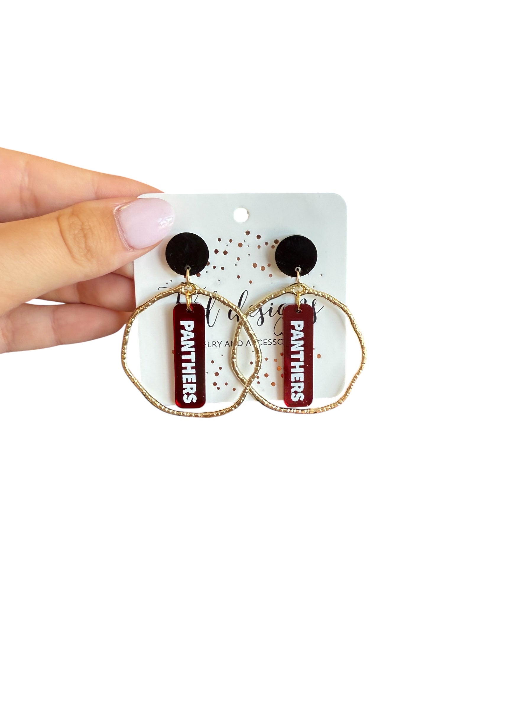 Sparkly maroon glitter dangle with bold black “PANTHERS” lettering