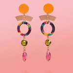Brighten up your vacation outfit with the Papaya Multi Tier Dangle earrings. These colorful resin earrings are hypoallergenic and feature 18k gold plated glass charms for a touch of glamour. A perfect blend of fun and fashion in one statement piece.