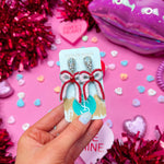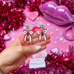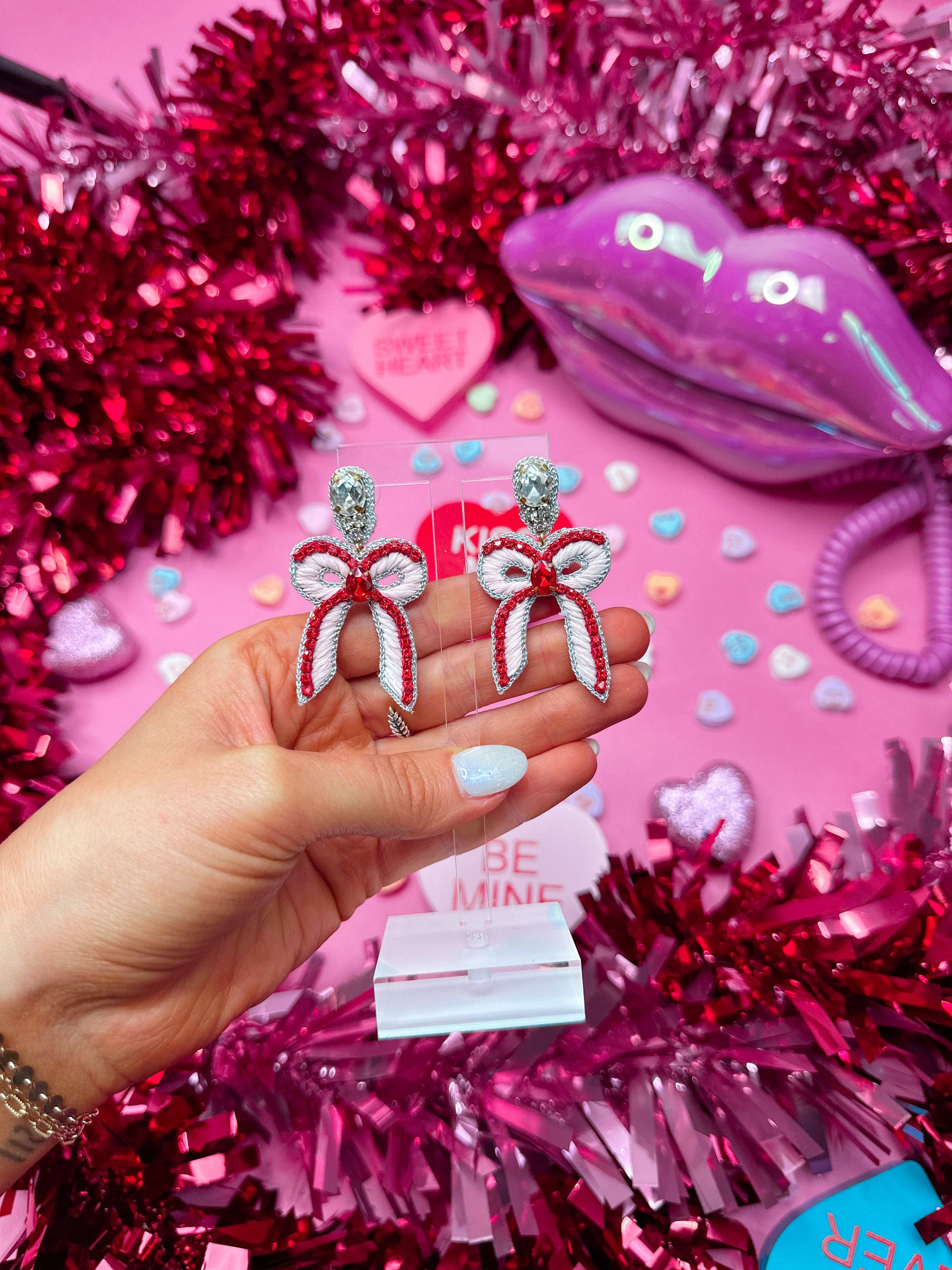 Add some sparkle to your look with our Pink/Red Beaded Bows! The oversized rhinestone studs paired with the delicate pink and red bows will surely catch everyone's eye. Make a statement and elevate any outfit with this must-have accessory.