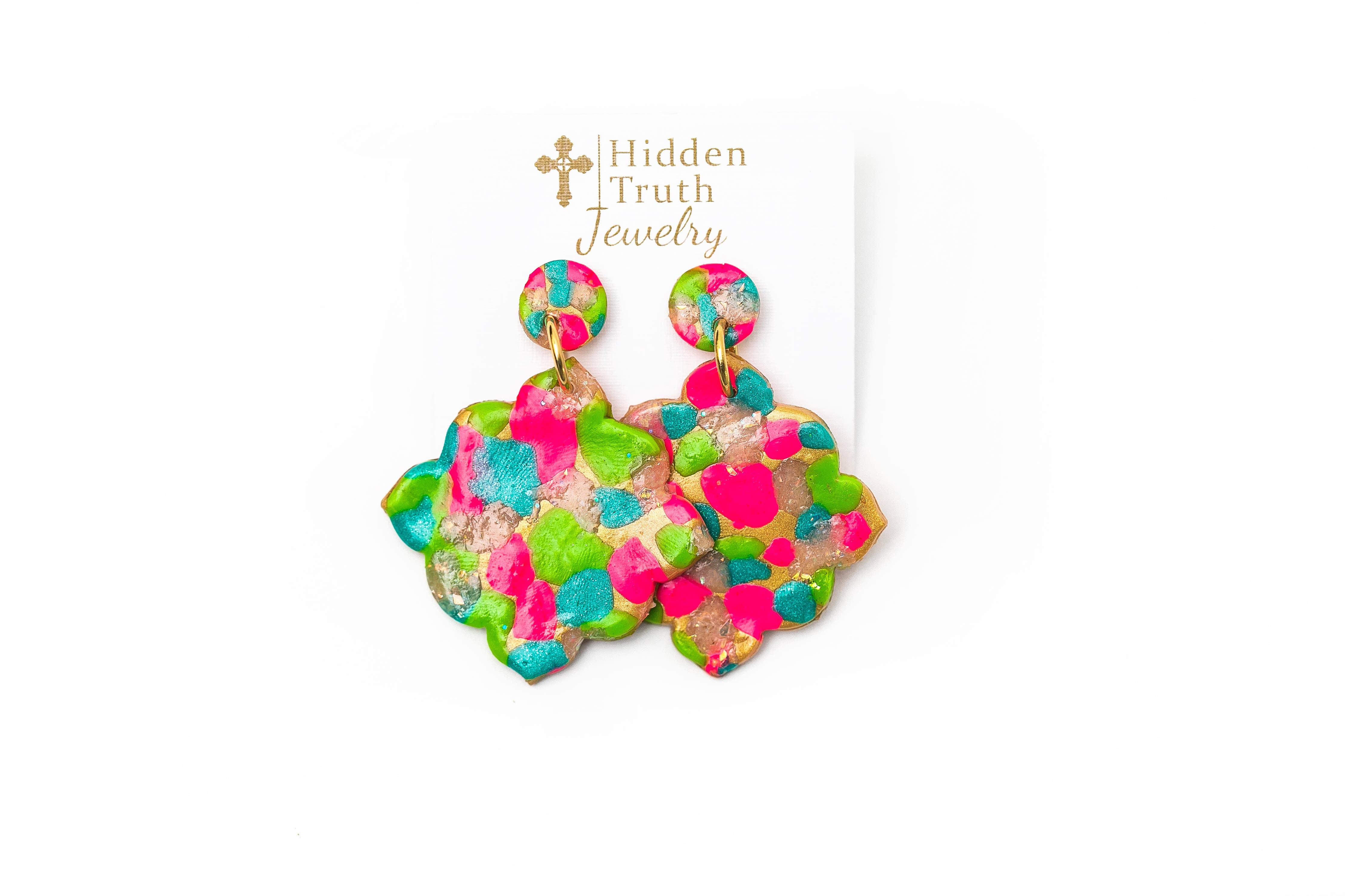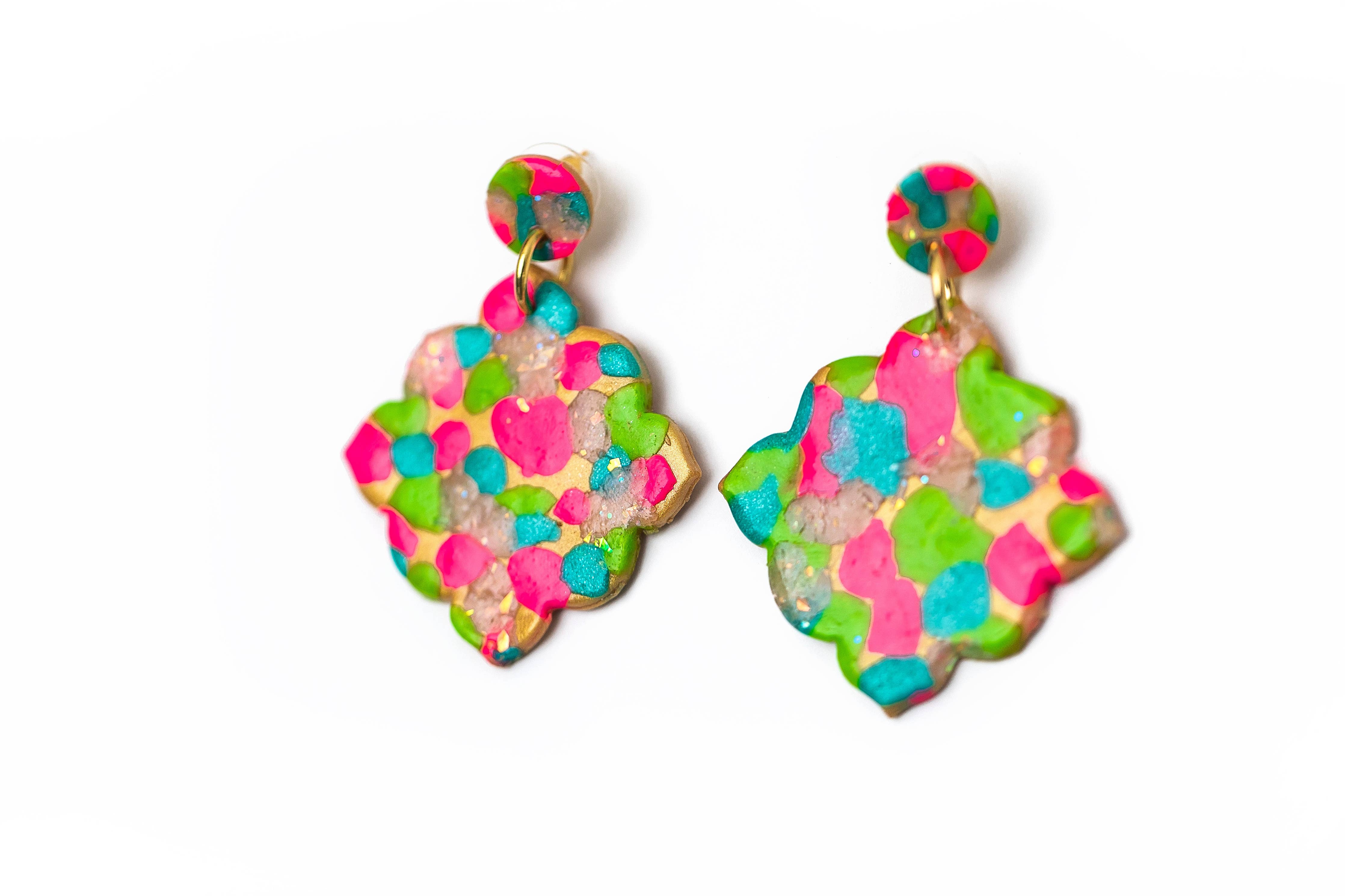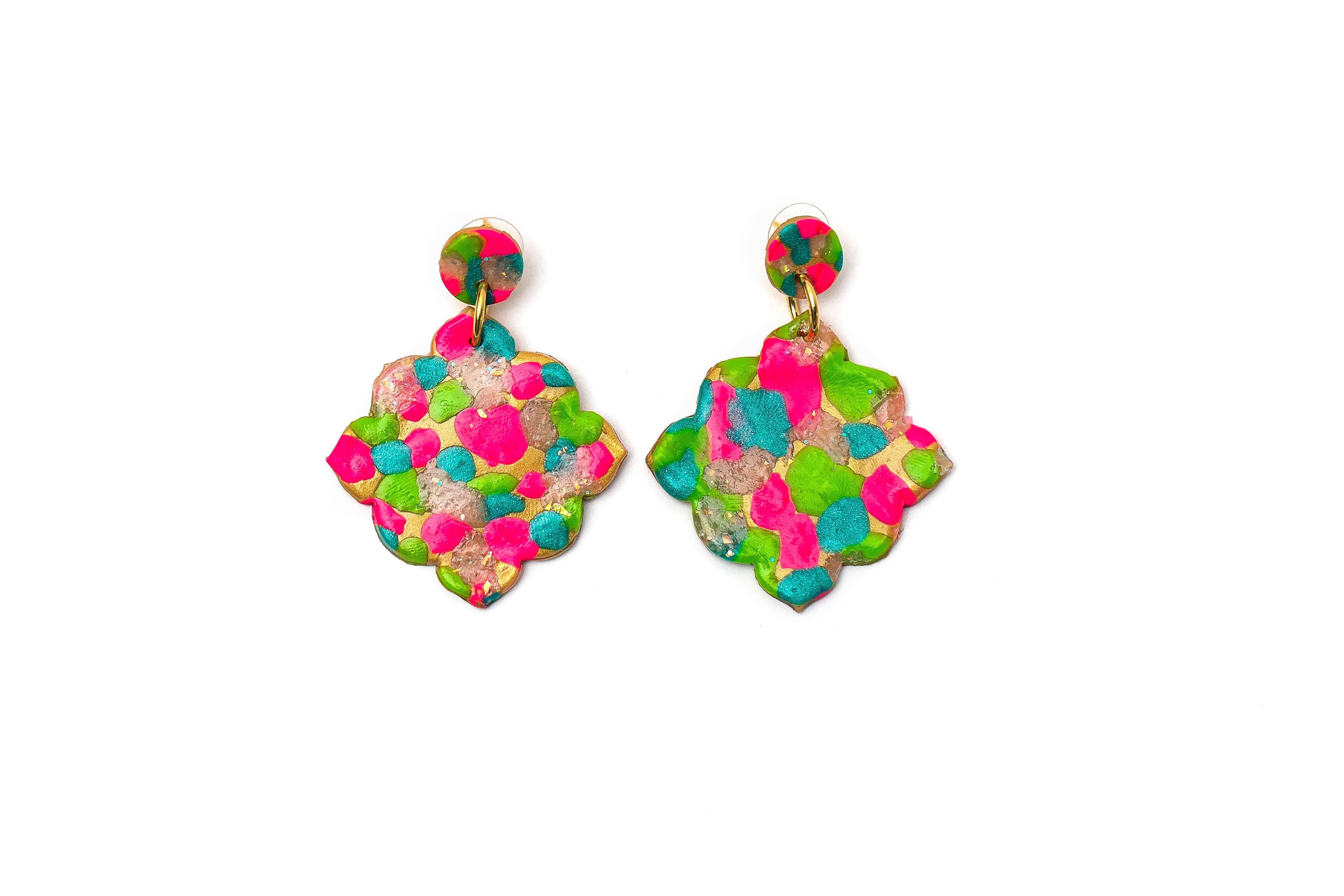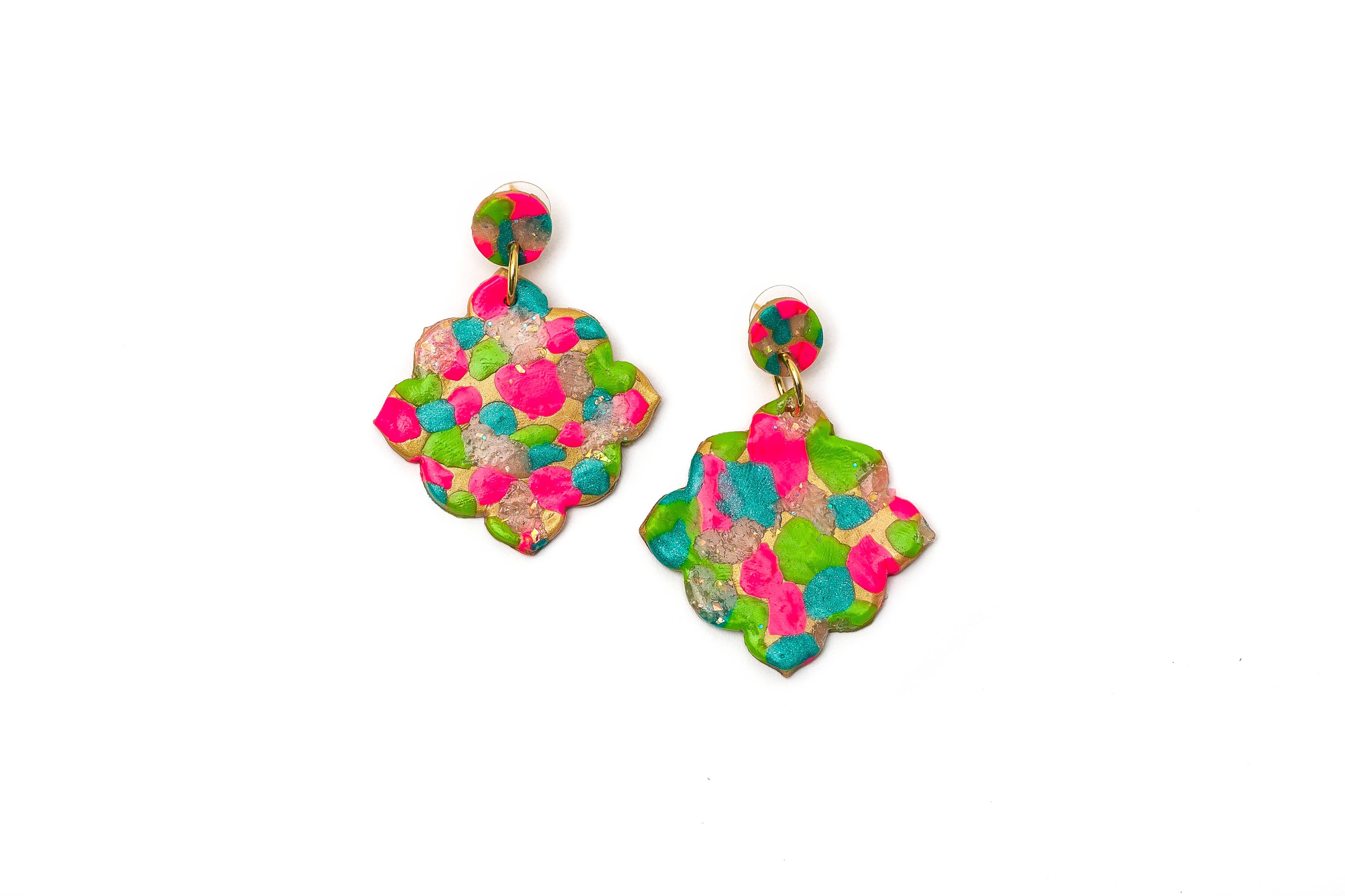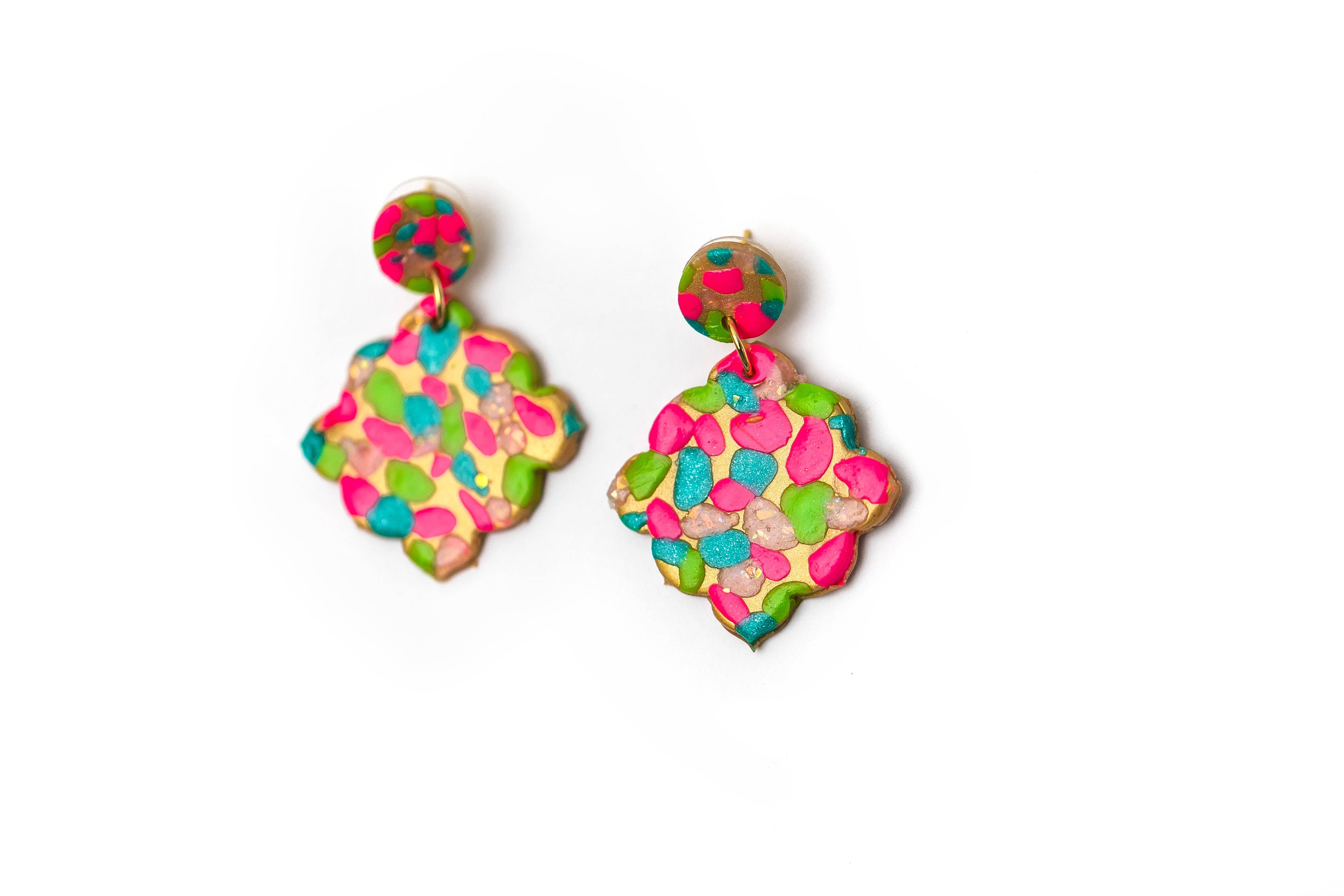 Pink, Turquoise & Green Confetti Dangle Earrings