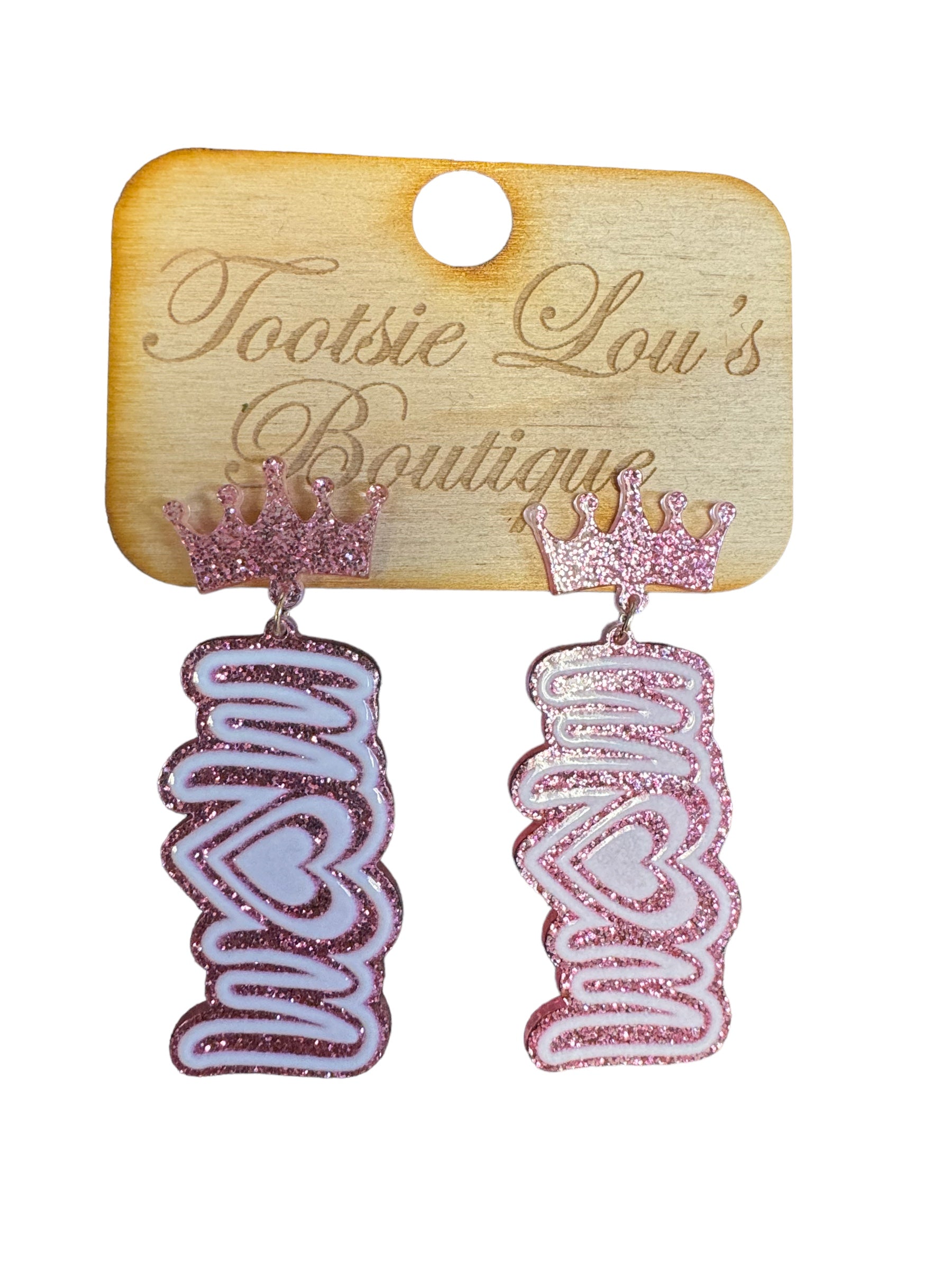 Indulge in the regal elegance of our Queen Mom Earrings. These exquisite earrings feature a stunning combination of pink and white, fit for a queen. Elevate any outfit with these luxurious earrings that truly embody sophistication and grace.