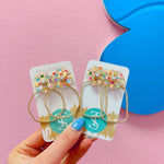 "Add some fun and flair to any outfit with our Rainbow Sequin Sunburst Hoop Earrings. These rectangle hammered gold hoops feature a colorful sunburst of sequins for a playful touch. Perfect for anyone who loves a bit of sparkle and a lot of personality!