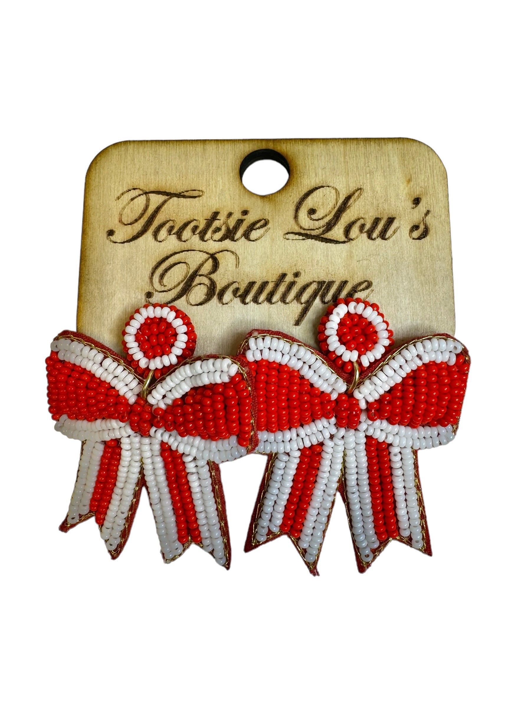 Add a pop of color to your outfit with these playful Red Beaded Bow Earrings! The red and white beaded bows are a fun twist on traditional earrings, making them perfect for any occasion. Express your unique style with these quirky earrings.