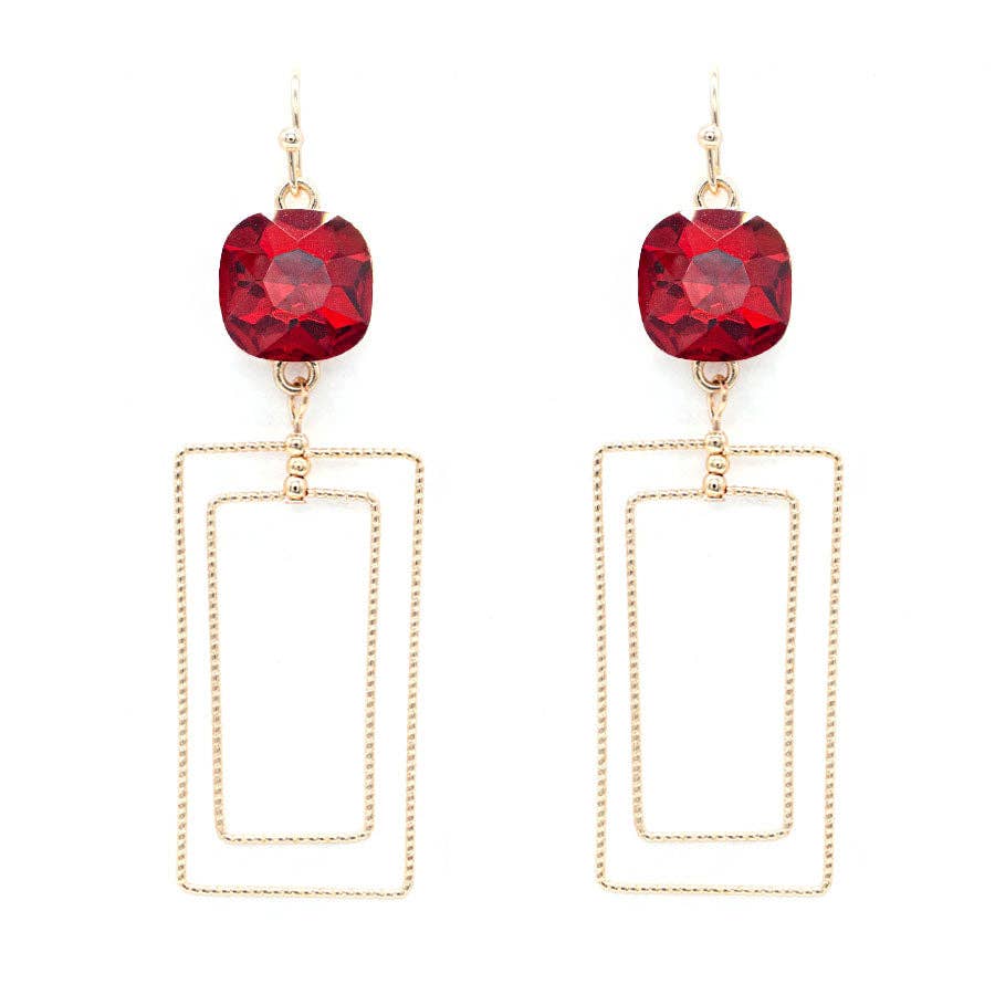 Red Stone Gold Rectangle Earrings