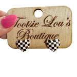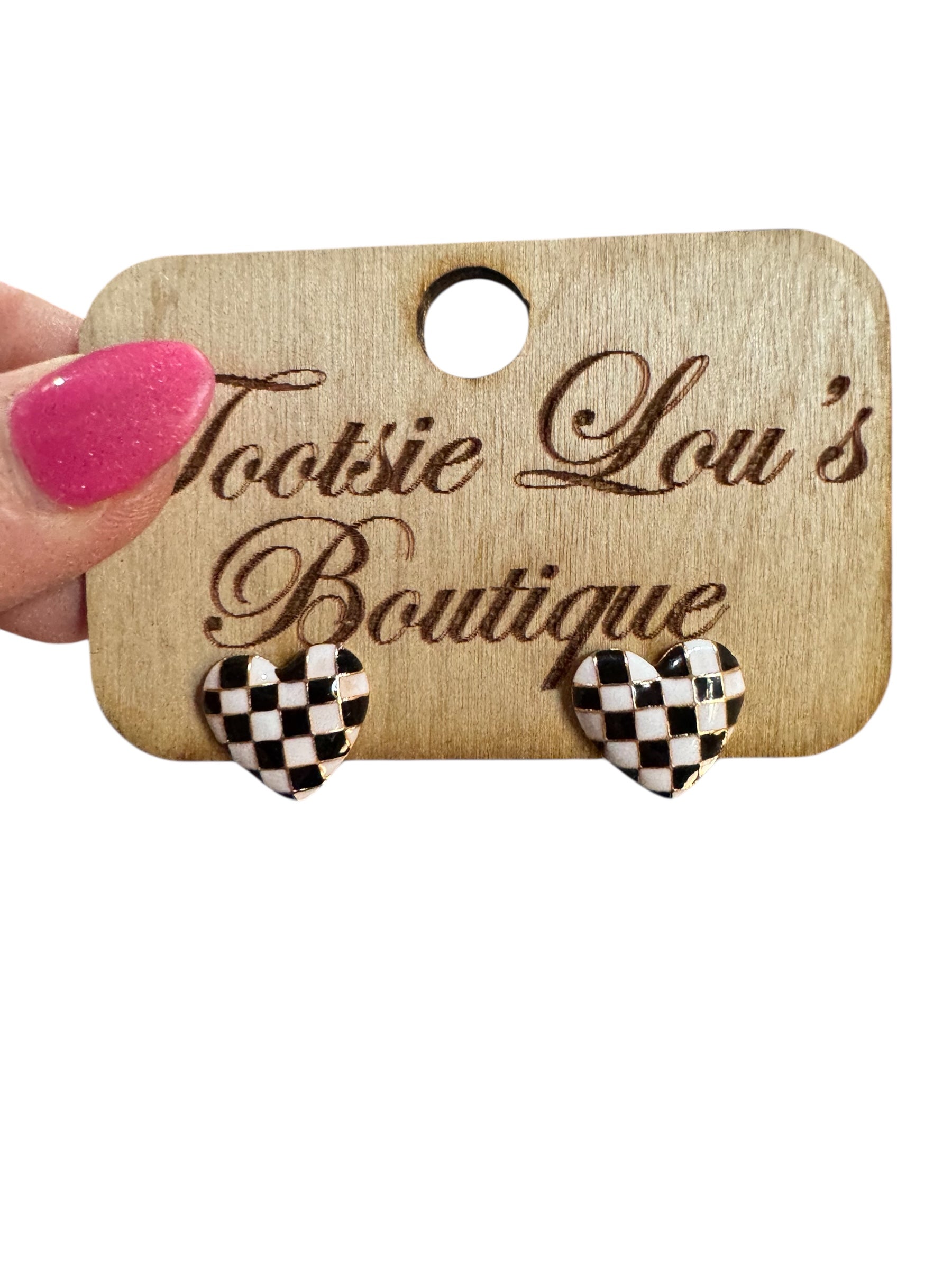 Add some fun to your look with these fun Small Black & White Checkered Heart Studs. These studs feature a playful black and white checkered design that will make a statement.